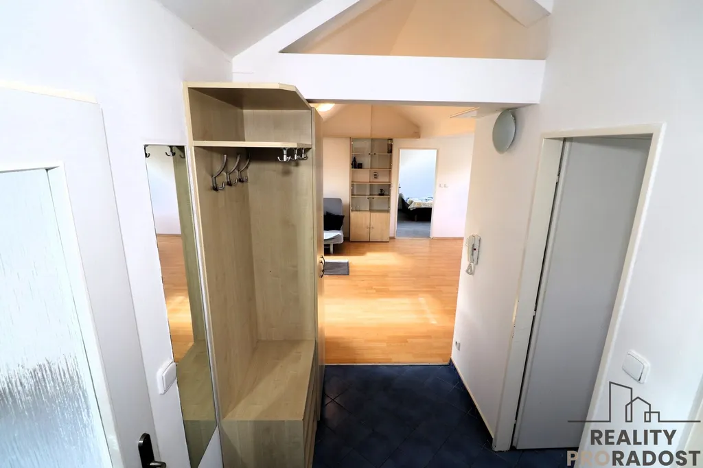 Nabízíme k pronájmu půdní vestavbu na cihlovém domě po celkové rekonstrukci v klidné lokalitě, pouhých 10 minut od centra Brna. Tento slunný a prostorný byt je orientován ve směru Východo-Západ a nabízí plné vybavení včetně spotřebičů ( multifunkční trouba, mikrovlnka, myčka, kombinovaná chladnička, automatická pračka ) a nábytku na míru. Velký prostor propojující obývací prostor s jídelnou a kuchyní dohromady o celkové ploše 38 m², ložnicí o rozloze 16 m² s krásným výhledem do okolí, druhým pokojem/pracovnou o 8 m², prostornou koupelnou, samostatným WC. praktickou komorou se vstupem z chodby ( úložným prostorem ), vlastním topením s ohřevem vody, kabelovou televizí a internetem.