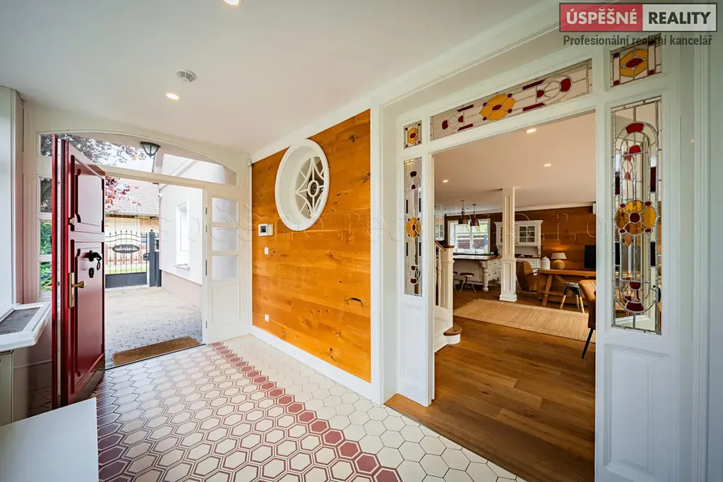 V exkluzivním zastoupení majitele Vám zprostředkujeme koupi unikátní vily o dispozici 4+kk s krytým stáním pro dva vozy, zahradním domkem a venkovním bazénem se slanou vodou. Částečně podsklepená vila s terasou, stojí spolu s rozsáhlou, udržovanou zahradou v městské části Prahy 5 Slivenec, ul. Opálová na pozemku o celkové rozloze 786 m2. Nemovitost prošla kompletní, velmi citlivou a nákladnou rekonstrukcí a výsledkem je architektonický skvost, který svým současným stavem a atraktivním umístěním v klidné lokalitě s okolní zástavbou rodinných domů, skýtá možnost komfortního a klidného bydlení zejména pro rodinu. Důraz byl kladen na prvotřídní užité materiály, jako dřevo, keramika, vitráže a jedinečné prvky zapadající do architektonického stylu první republiky.