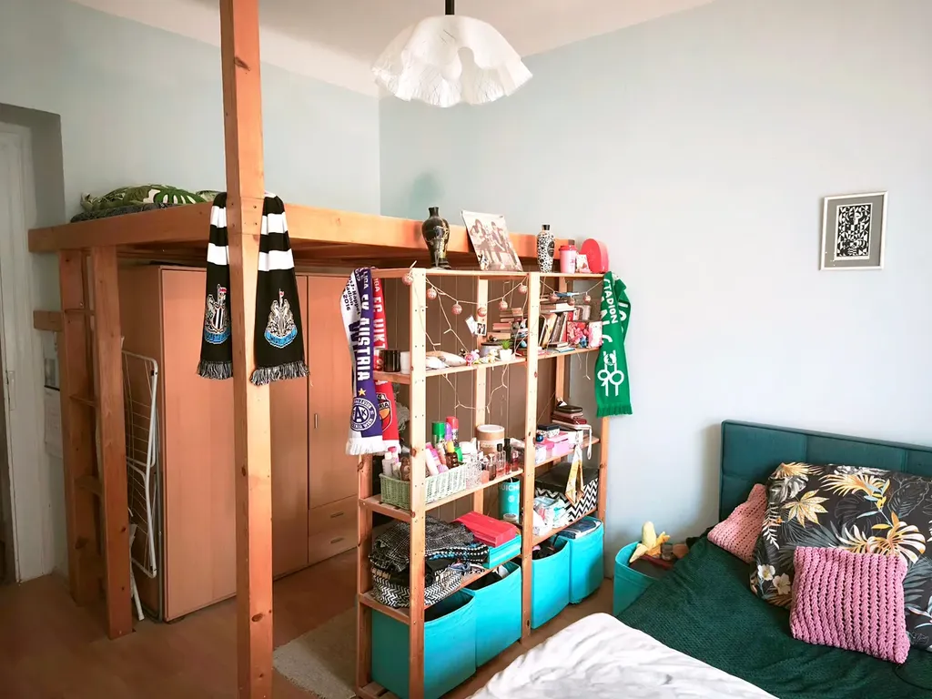 Tento byt se nachází ve 2. patře činžovního domu bez výtahu s dobrou dostupností na Náměstí míru. Je zařízený kuchyňskou linkou, pračkou, ostatní vybavení po dohodě. Koupelna se sprchou a toaletou. V místnosti je plovoucí podlaha. V pokoji je patro na spaní. K dispozici kabelová TV. Dobrá denní i noční dopravní dostupnost. Majitel preferuje zájemce bez psů. Kauce činí jedno měsíční nájemné včetně zálohy na služby. Provize je 12.900, Kč.