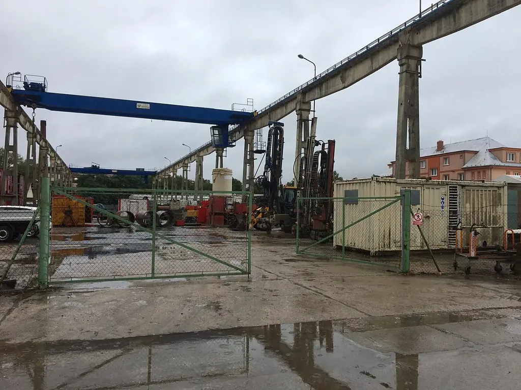 Vedle plochy je kancelářský dům s užitnou plochou 180 m2. Možnost pronájmu plechové haly pod jeřábem.
