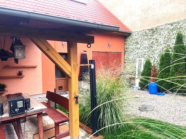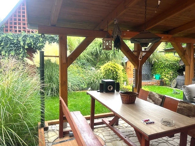 Dům je dispozičně řešený jako 5+kk a jeho velkým bonusem je prostorné a kryté posezení za domem se samostatnou kuchyní. Tento prostor poskytuje naprosté soukromí a navazuje na rozlehlou zahradu s ovocnými stromy, na které se nachází dřevěný domek. Zahrada je ideálním místem pro relaxaci, aktivity s rodinou nebo zahradničení.