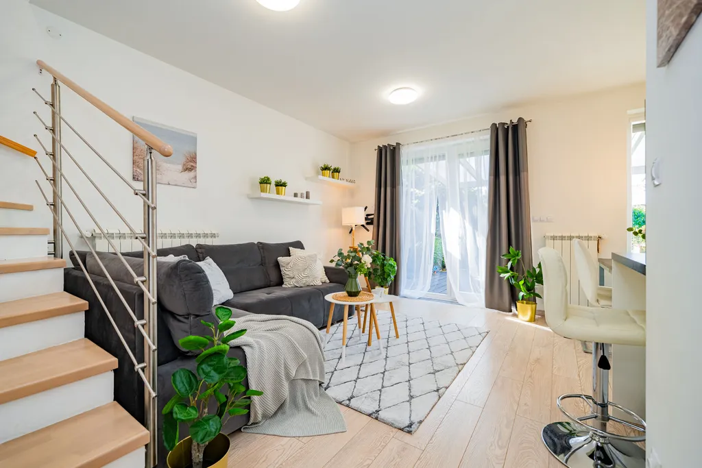 V přízemí domu je obývací pokoj s jídelnou, kuchyní, vstupem na terasu domu a dále do zahrady. Kuchyňská linka je vybavena spotřebiči ( varná deska, digestoř, trouba, mikrovlnná trouba, myčka nádobí, lednice, mrazák). Garáž domu je přístupná vraty na dálkové ovládání a je prakticky propojena dveřmi s interiérem domu, což poskytuje pohodlí v rámci nákupů a umožňuje jednoduché využití garáže v rámci úložného prostoru. V přízemí domu je vstupní chodba, koupelna se sprchou a toaletou. Patro domu má tři samostatné pokoje. V ložnici jsou vestavné skříně. Pokoje je možno využít dle vlastní potřeby, jako dětské pokoje, ložnice či pracovnu. V patře domu je další koupelna se sprchovým koutem a vanou. Toaleta je zde samostatná. V domě jsou předokenní žaluzie. Zahrada domu je velmi pečlivě udržovaná, rovinatá, zatravněná se vzrostlými stromy, dřevinami. Za zmínku stojí také maliny a rybíz. Zahrada má jednoduchý systém zavlažování. Výhodou je úložný domeček a především zastřešená terasa domu, která svým využitím reálně zvětšuje plochu domu.