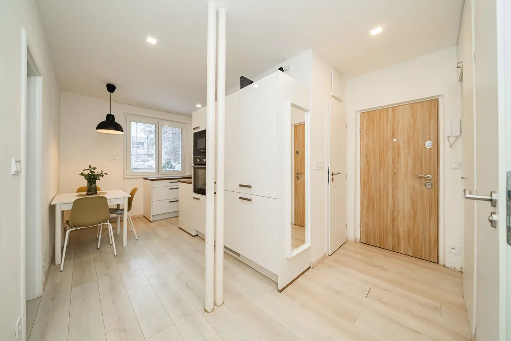Nabízíme Vám k pronájmu byt 3+1 se zasklenou lodžií o celkové ploše 70 m2. Byt je umístěn ve zvýšeném přízemí panelového domu po kompletní revitalizaci. Byt má velmi praktické dispozice a prošel v nedávné době celkovou rekonstrukcí včetně nového bytového jádra, rozvodů, kuchyně, podlahových krytin a nyní je čerstvě vymalován. Byt působí velmi vzdušně, což je způsobeno moderním propojením vstupního prostoru s jídelnou a kuchyní. Ta je vybavena kuchyňskou linkou se spotřebiči (varná deska, digestoř, trouba, myčka, lednice Dále jsou k dispozici tři samostatné pokoje. Ložnice je částečně vybavena manželskou postelí s matracemi, skříněmi a je z ní umožněn vstup na lodžii bytu. Obývací pokoj se sedací soupravou a křesli. Poslední pokoj je nyní prázdný. V chodbě bytu jsou vestavné skříně jejichž součástí je i velmi sofistikovaně schovaná pračka. Koupelna se sprchovým koutem a toaleta oddělená. V suterénu domu je sklep, který náleží k bytu. Velkou výhodu bytu je jeho lokalita, která snoubí klidné místo pro život, kompletní síť obchodů a služeb a především těsnou blízkost metra i tramvají (stanice Bořislavka).