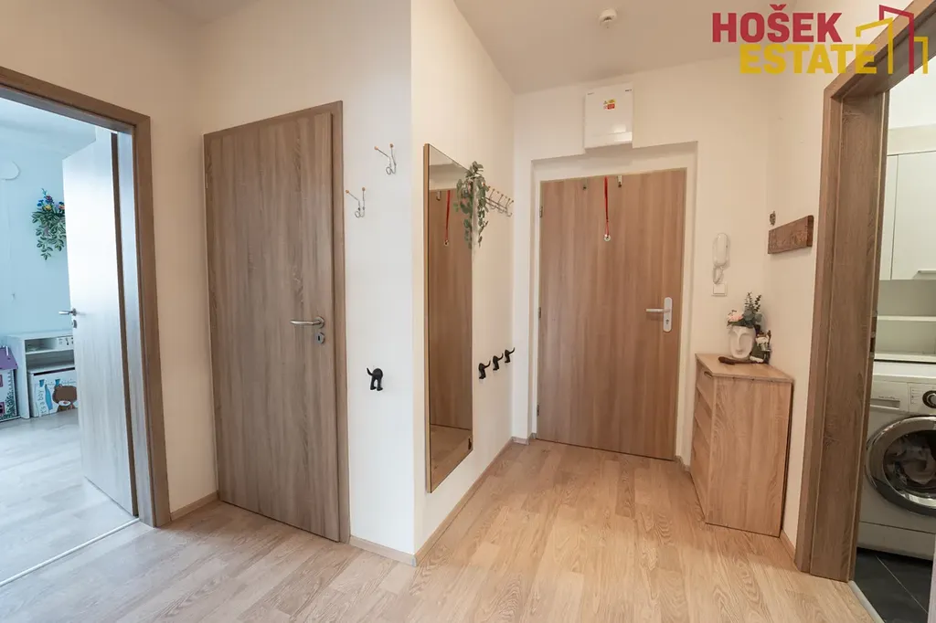 Byt se nachází ve druhé podlaží bytového domu zkolaudovaného v roce 2018, který je ve velmi dobrém technickém stavu. Je orientovaný na jiho-západ. To Vám zajišťuje dostatek světla po celý den. Velmi praktická dispozice s užitnou plochou 73m² nabízí dostatek prostoru pro rodinu s dětmi. Navíc se v bytě nachází ještě samostatná šatna pro uložení například sezónních věcí.