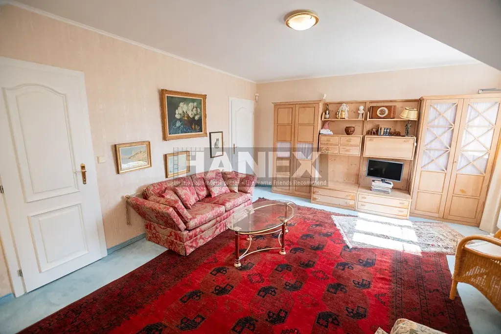 Do přízemí je situována prostorná garáž pro dvě auta. Dále je zde rozsáhlá obytná část s krbem, plně vybavená kuchyň, jídelna, šatna a toaleta. Z obytné části a jídelny se vstupuje na jižně orientovanou terasu 40 m2 a zahradu se vzrostlými keři a stromy.