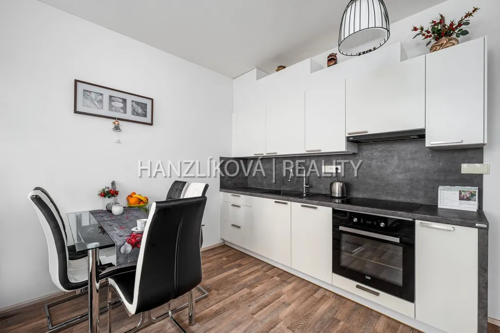 Nabízíme k prodeji novostavbu bytové jednotky o dispozici 2+kk (byt číslo A.511) s terasou, sklepem a dvěma vyhrazenými parkovacími stáními v klidné okrajové části města, na okraji sídliště Vltava, v těsné blízkosti lesa a Vrbenských rybníků. Byt se nachází v 5. NP ( posledním patře) zděného bytového domu s výtahem. Bytová jednotka má výměru 50m2 m2 + terasa o výměře 8,17 m2 + sklep o výměře 2,6 m2 a skládá se z: předsíně a chodby, kde je vestavná, prostorná vestavná skříň, koupelny s toaletou, ložnice a obývacího pokoje s kuchyňským koutem. Z obou místností je vstup na terasu. Byt je orientovaný na západ do vnitrobloku mimo silnici a má výhled do zeleně. V bytě zůstává kuchyňská linka na míru včetně spotřebičů, vybavení koupelny a vestavné skříně v chodbě, zbylé vybavení možno ponechat po domluvě.