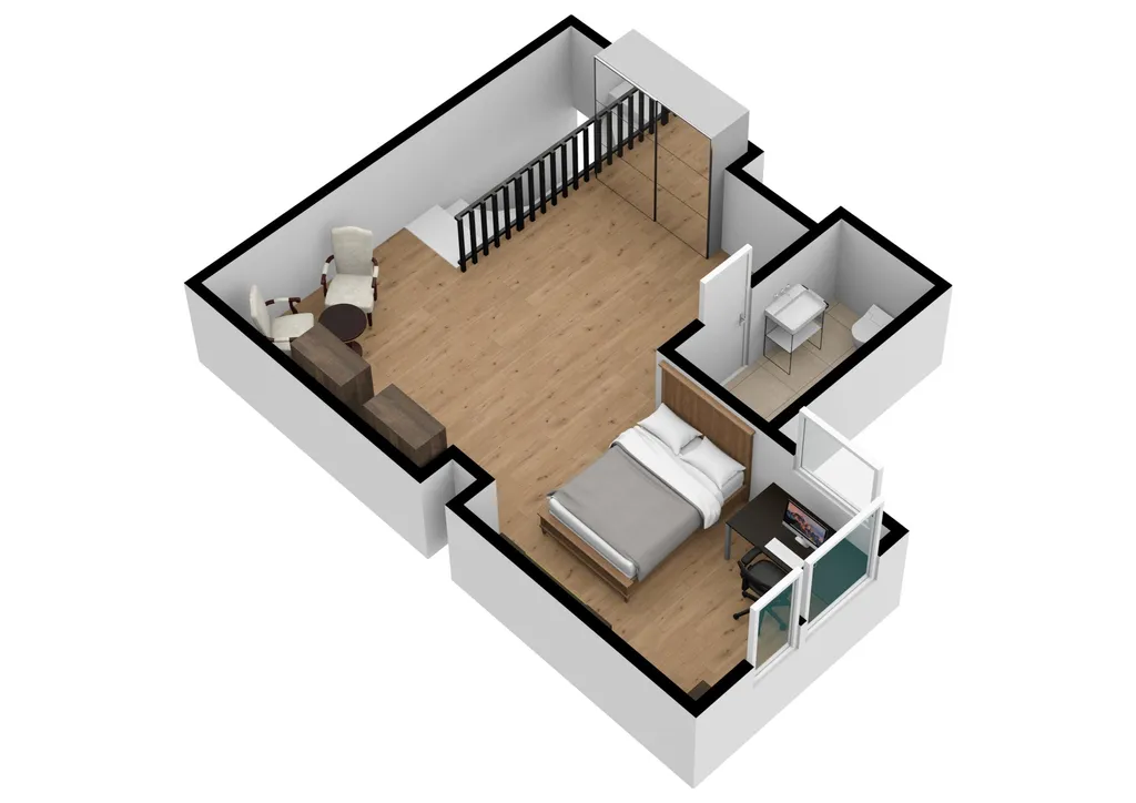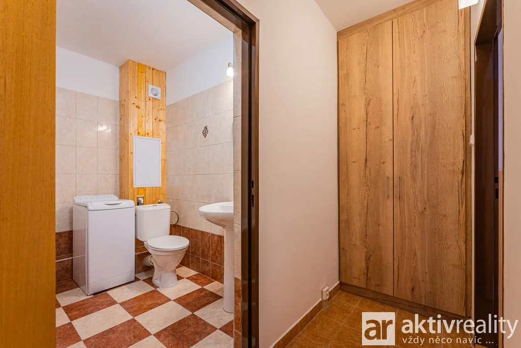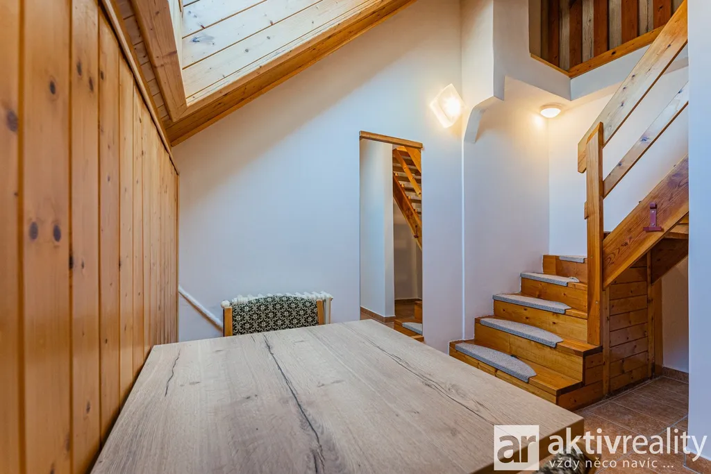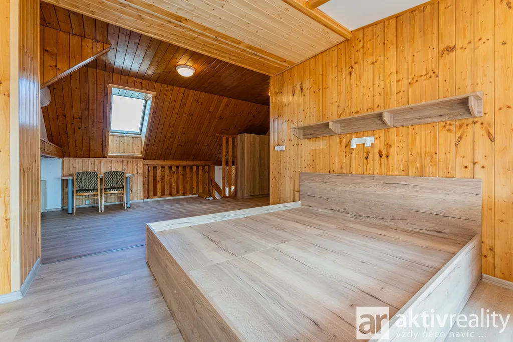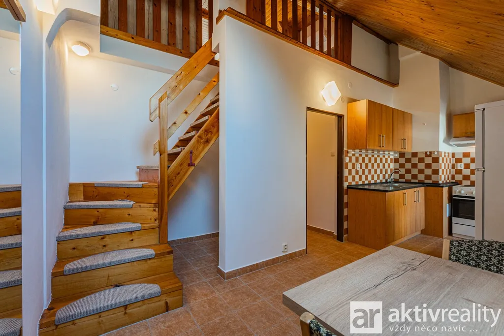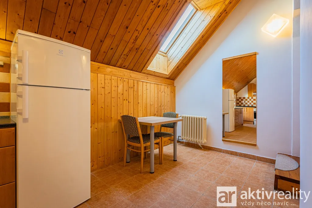 V podkroví se nachází prostorná obytná místnost s možností oddělení klidové části na spaní a samostatné WC. Díky mezonetovému řešení působí byt vzdušně a nabízí dostatek soukromí.