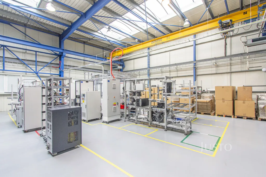 Hala je vybavena dvěmi jeřáby (první s nosností 5 tun, druhý s nosností 3,2 tuny). Regály, které jsou nyní v hale mohou být k dispozici i pro nového majitele.