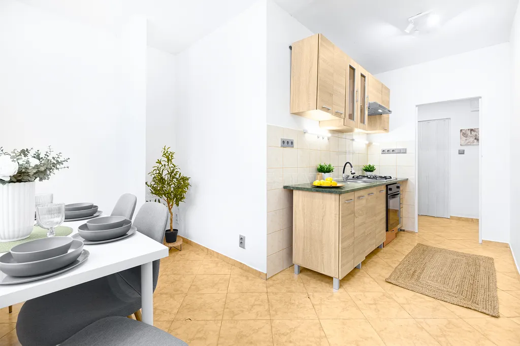 Tento byt prošel rekonstrukcí v r. 2014, která přinesla moderní prvky a vylepšení, zejména zděné jádro a prostornou rohovou vanu, která poskytuje komfort a relaxaci. V bytě je kuchyňská linka, nové interiérové dveře a okenní rolety. Po celém bytě jsou instalována topná tělesa, která zajišťují příjemné teplo v zimních měsících, a centrální dálkové topení je výhodou pro pohodlné užívání. Odpad je napojen na kanalizaci a přívod vody je zajištěn z vodovodu. Byt je vybaven také přípojkami na optický internet, což zajišťuje rychlé a spolehlivé připojení k internetu.