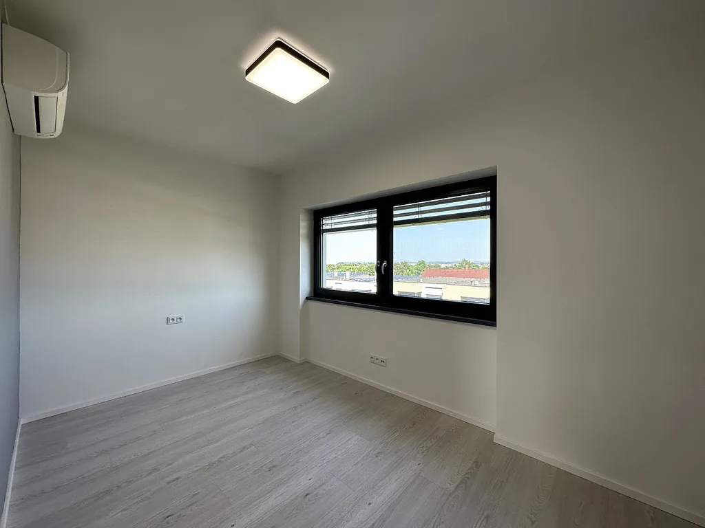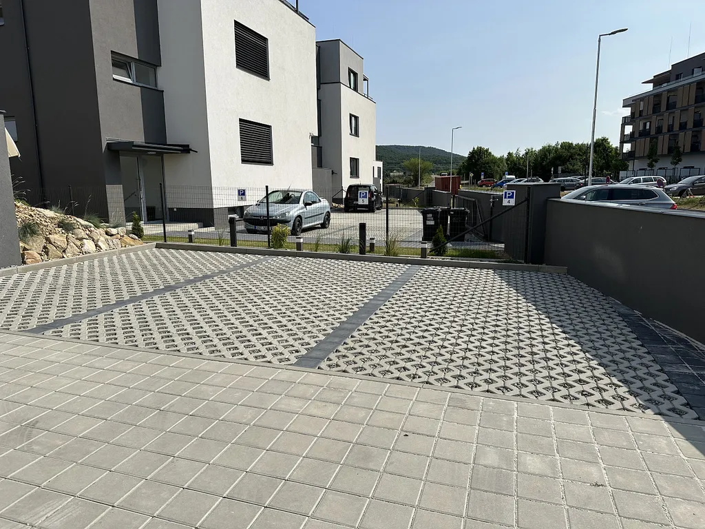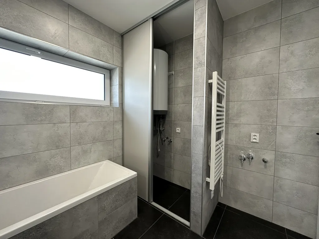 This modern apartment is on the 2nd floor and is partially furnished - kitchen with appliances, built-in wardrobes, complete lighting equipment, air conditioning, outdoor electric blinds, window nets against insects, video intercom, central water treatment plant (automatic softener). There are 2 private parking spaces on a fenced plot with the possibility of EV charger and there is also a cellar.