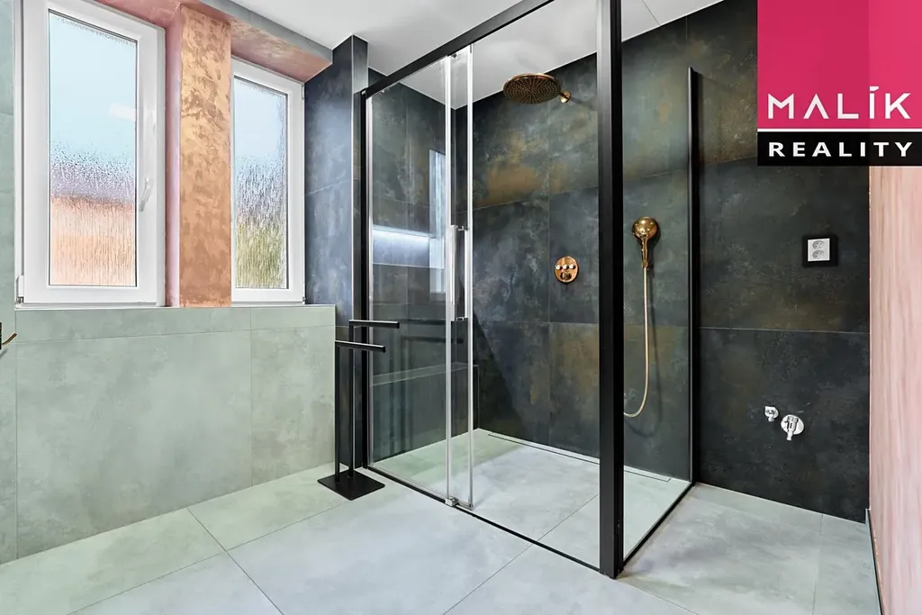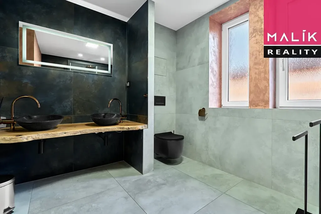 Designové prvky jsou patrné především v části koupelny, kde se nachází prostorný sprchový kout a velké zdvojené umyvadlo. Podlahové elektrické topení dokresluje kvalitní řešení rekonstrukce. Velikost koupelny, bezmála 9m2, je v podobných bytech velmi nestandardní, zde příjemně luxusní. Z chodby je vstup do moderní kuchyně a pokoje, který je dál průchozí do ložnice. V této místnosti je vstup na balkon. který Vám zpříjemní posezení při letních večerech.