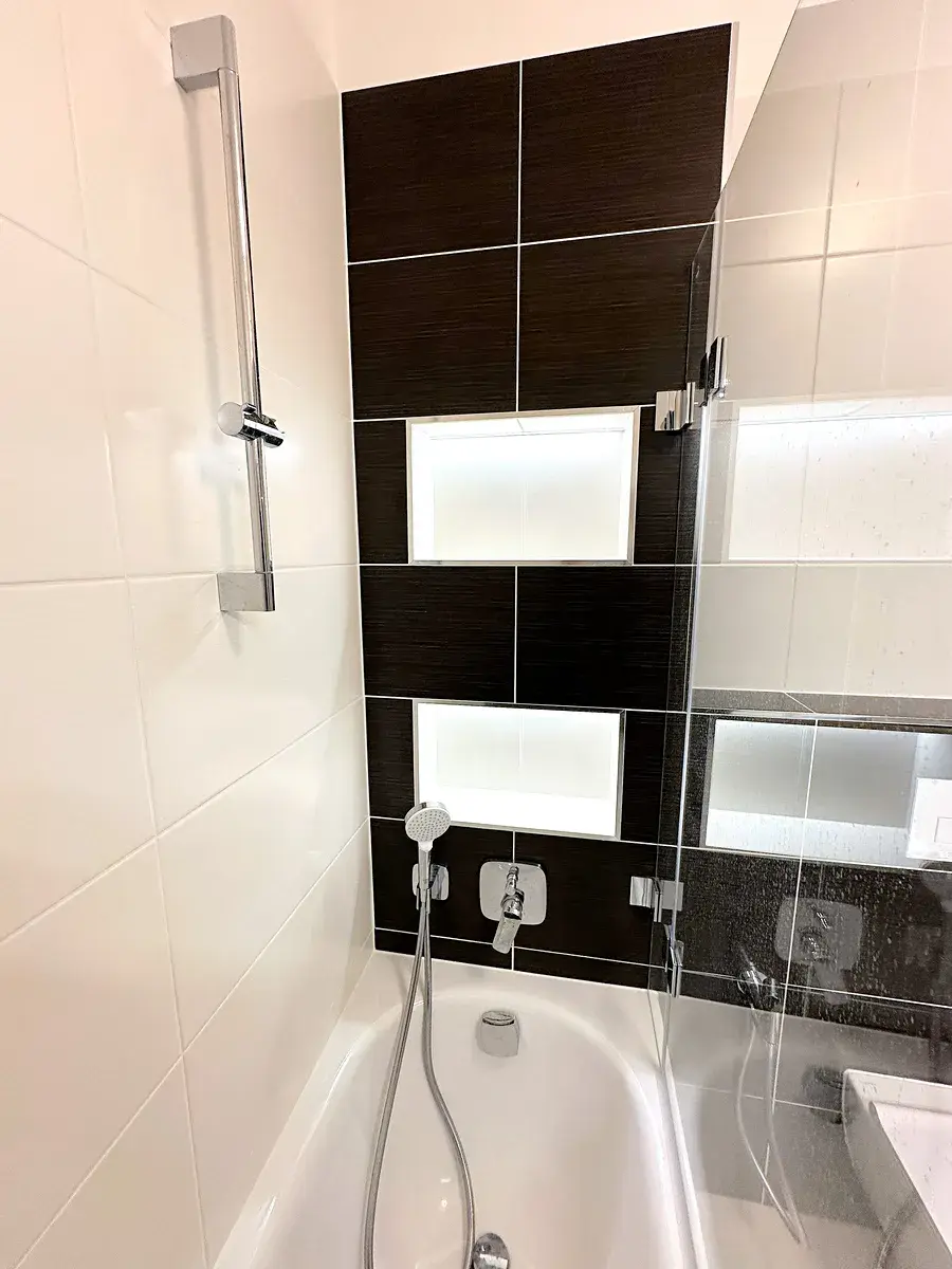 - nadstandardní provedení (dálkově ovládané venkovní žaluzie, podomítková baterie, osvětlené niky u vany/sprch. koutu)