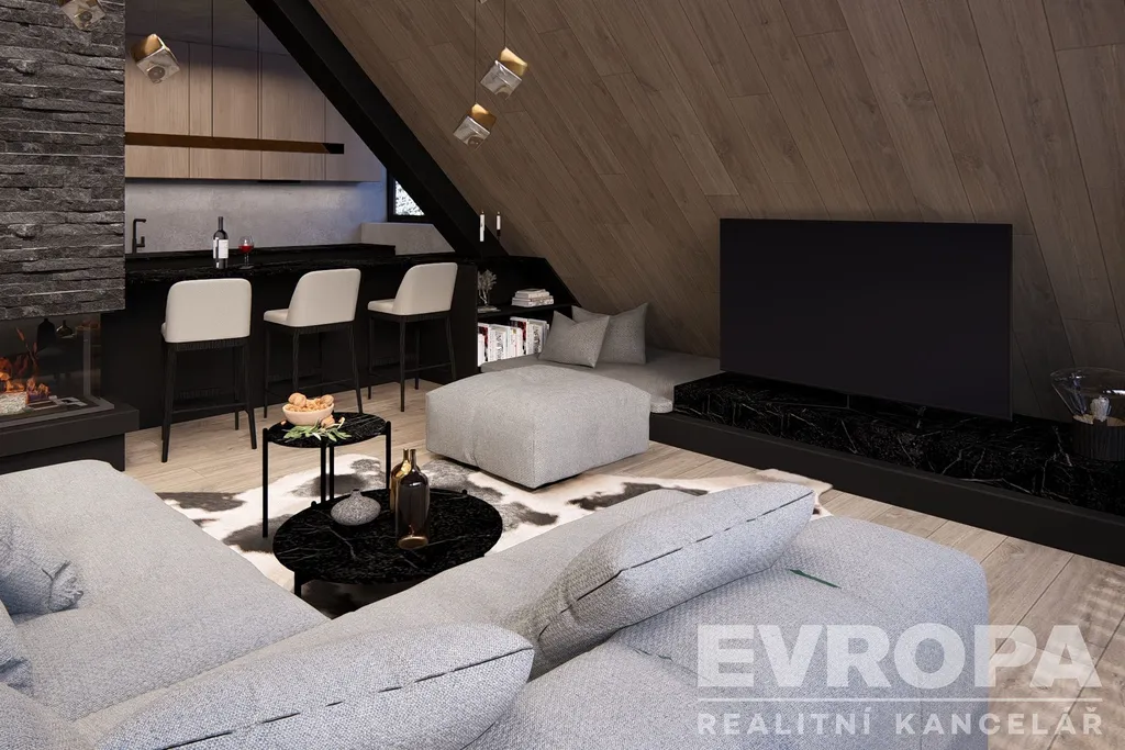 Dispozičně jednotka nabízí prostorný obývací pokoj s vysokými stropy, tři samostatné ložnice, tři koupelny s toaletami, šatnu a samostatnou saunu s jedinečným výhledem na sjezdovky. Z obývacího prostoru se otevírá dechberoucí panorama Krkonoš, které podtrhuje výjimečný charakter této nemovitosti. Dominantou obývacího pokoje bude klasický krb, jenž dotváří příjemnou horskou atmosféru a pocit útulného luxusu.
