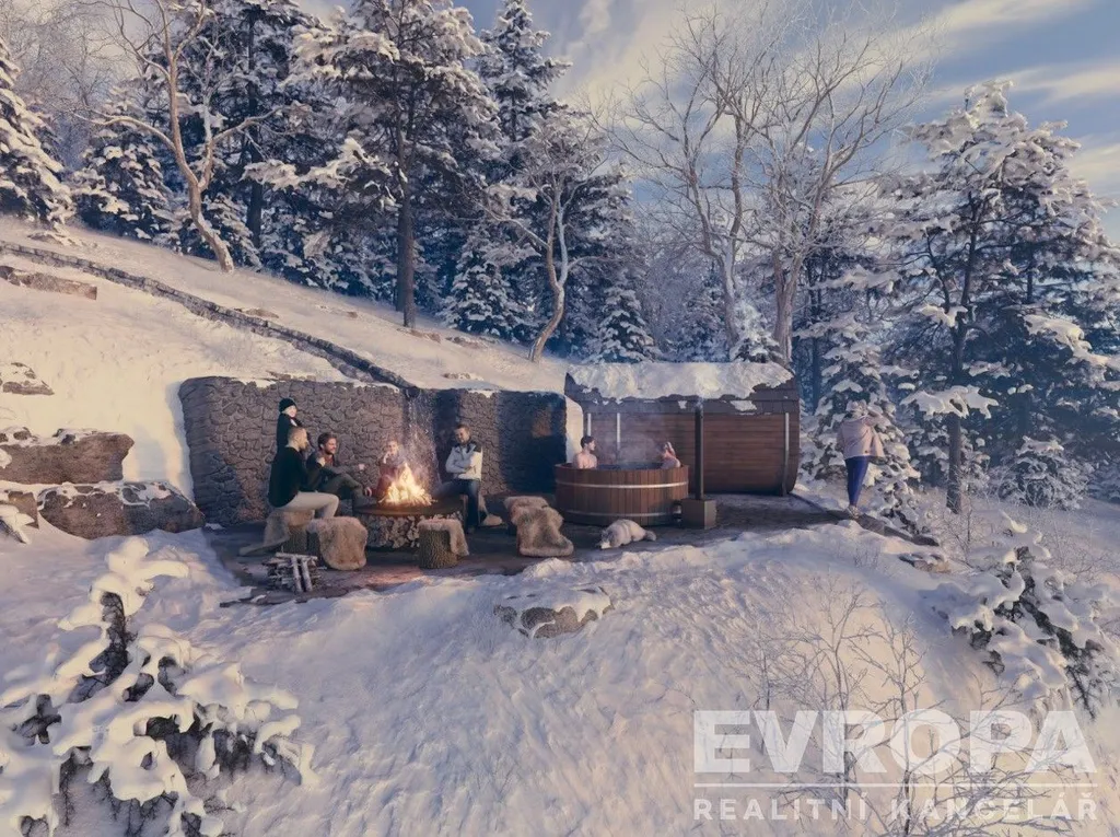 • soukromé venkovní wellness zázemí (sauna, koupací sud s horkou vodou, venkovní ohniště),