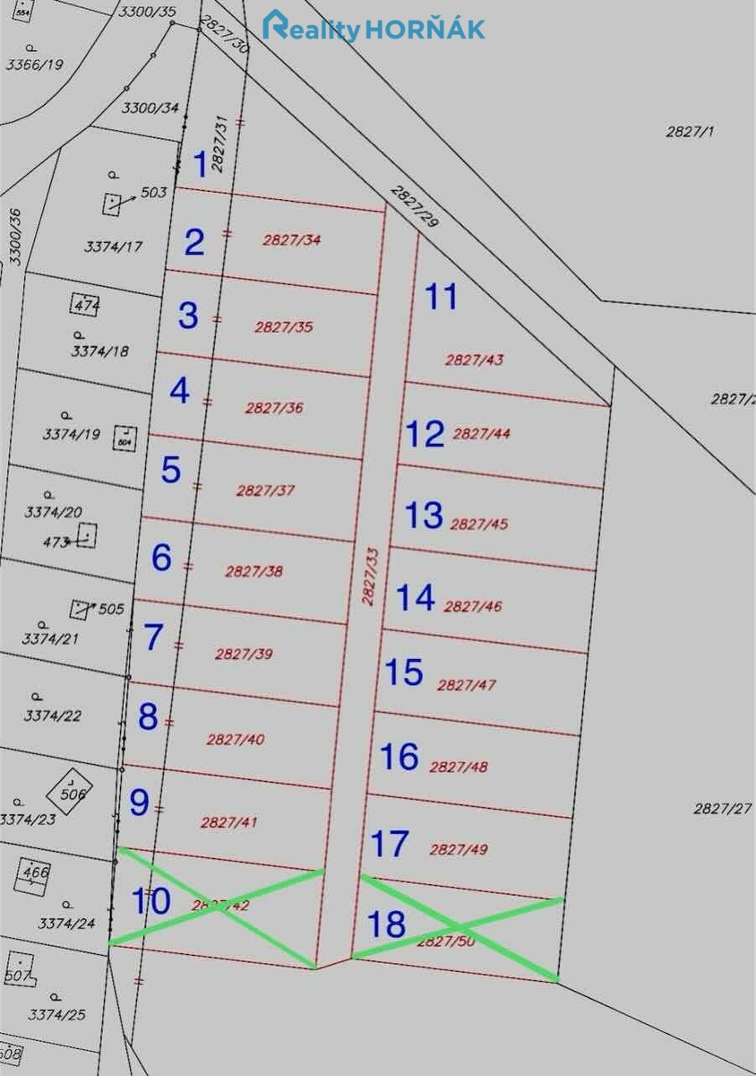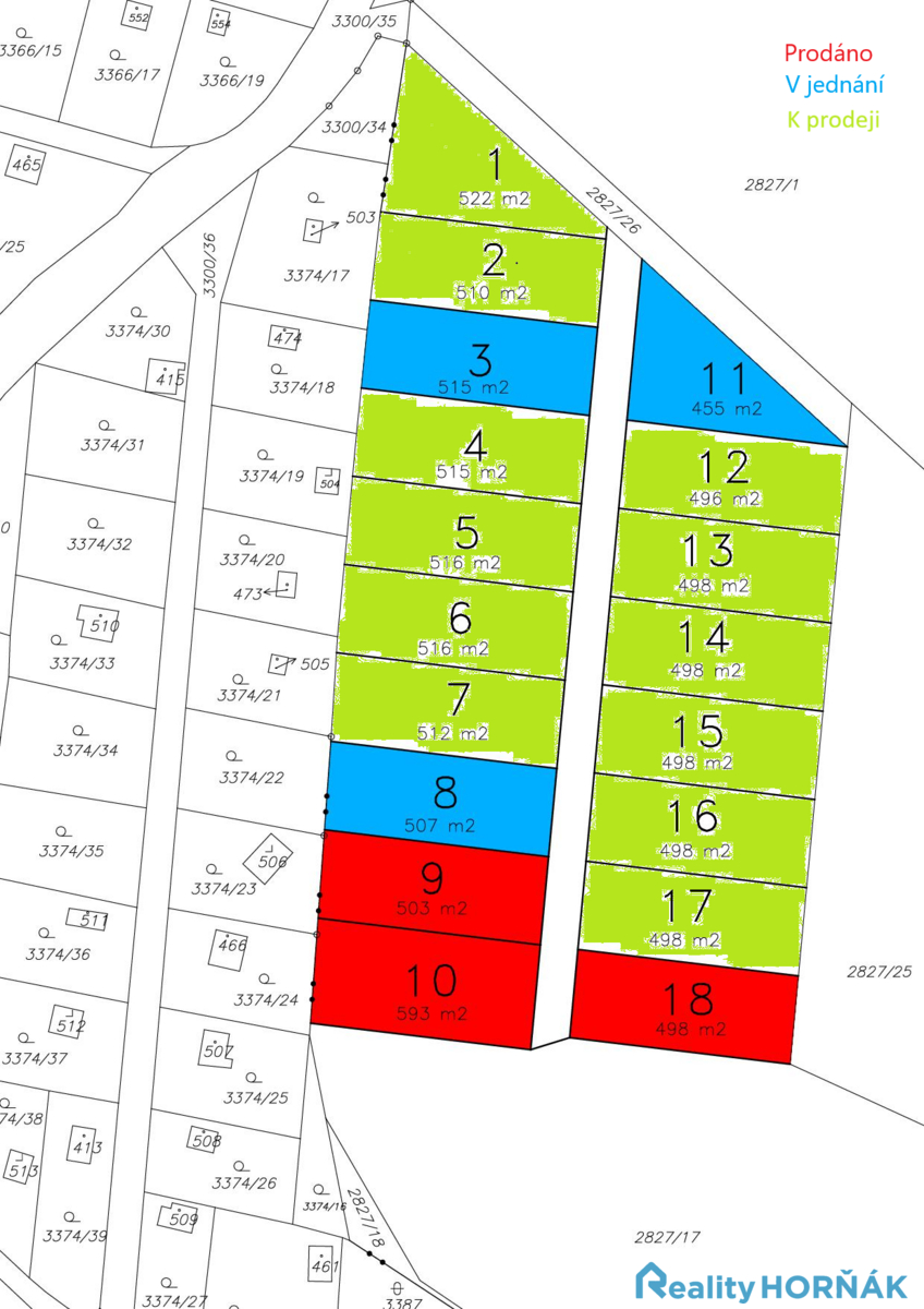 Z osmnácti vymezených parcel je jich v současné době v aktivní nabídce třináct. Parcely, označené v úvodní fotografii čísly 9, 10 a 18 jsou prodány, parcely 3 a 11 jsou předběžně rezervovány.
