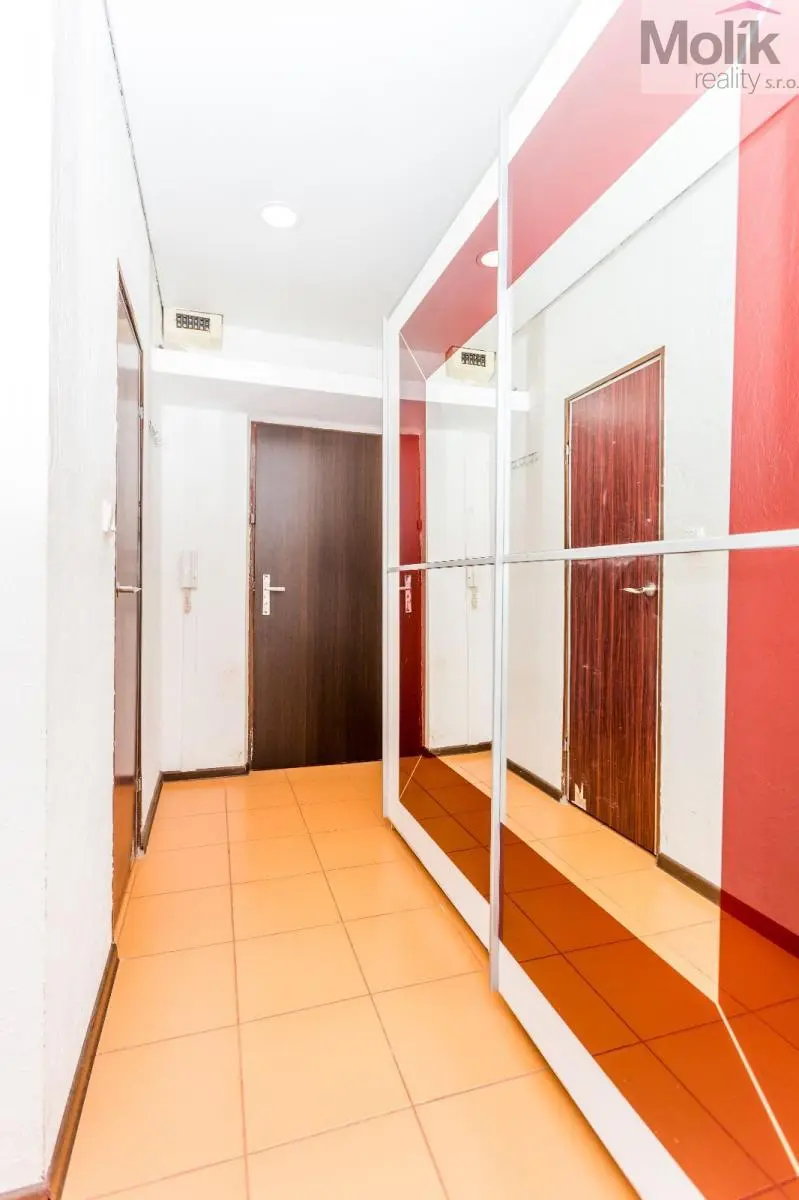 Byt prošel kompletní rekonstrukcí rozšíření koupelny, oddělení kuchyně od obývacího pokoje, nové rozvody vody, napínané fóliové stropy a nové podlahy.
