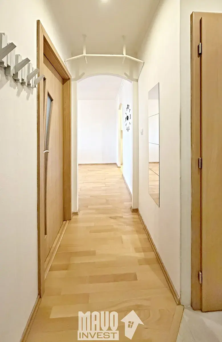 Skvělá nabídka zrekonstruovaného bytu 2+kk/komora (42,5m2 +2,5m2), vše v 5.NP panelového domu s orientací oken na jih. Byt prošel kompletní rekonstrukcí, kdy poslední úpravy proběhly v roce 2023 realizací kuchyňské linky, kompletním rozvodem elektřiny a vestavné skříně v chodbě plus další. Dispozice je tvořena chodbou tvaru "L" otevřeně navazující na obývací pokoj s odděleným kuchyňským koutem, uzavřenou ložnicí a v neposlední řadě koupelnou a samostatným WC. Součásti kupní ceny jsou všechny pevně ukotvené vybavovací předměty, tj. šatní skříně v ložnici a chodbě, vyklápěcí postel v obyv. pokoji, kuchyňská linka aj. Rekonstrukce společných interiérů domu vč. nového rozvodu elektřiny proběhla před 5-6 lety. V roce 2025 byly instalovány venkovní rolety s vnitřním el. ovládáním a v letošním roce počínaje lednem je plánovaná příprava pro realizaci zateplení budovy (úprava projektu a výběrové řízení realizační firmy + úvěr). V domě jsou instalovány bezpečnostní kamery. Dodávka tepla a teplé vody je zajištěno dálkově. Občanská vybavenost vč. lékařů je v docházkové vzdálenosti 2-4 minut klidnou chůzi. Koupi bytu lze financovat hypotékou, kterou vám rádi zajistíme.