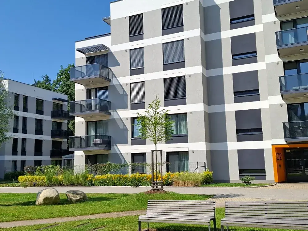 Ve vnitrobloku se nachází soukromé dětské hřiště s lavičkami pro posezení - ideální pro rodinu s malými dětmi.