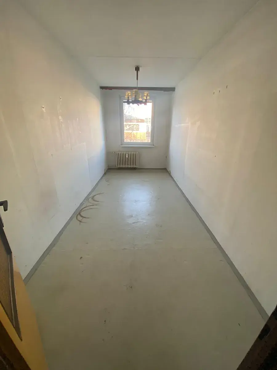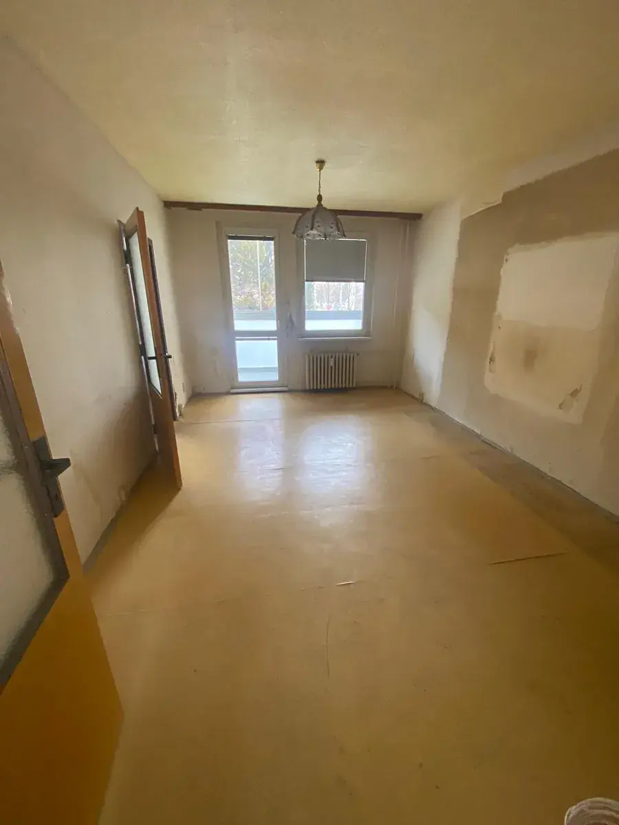 Dispozice bytu: předsíň, dlouhá vstupní chodba do tvaru T, na jejímž konci je umístěna koupelna a WC, rozděluje byt na dvě křídla. Levé křídlo s orientací do parku na JV disponuje kuchyní (10 m2) a obývacím pokojem (18,5 m2), z něhož je vstup francouzskými dveřmi na lodžii 4 m2. Lodžie je nově zrekonstruovaná - velkoformátová dlažba, prosklení. Pravé křídlo s orientací na SZ má dva pokoje (12 m2 a 14 m2). Byt je světlý, prostorný, ihned připraven k rekonstrukci dle svých představ a nápadů. Byt v tomto stavu a za tuto cenu nabízím pouze 2 týdny, pak bude probíhat kompletní rekonstrukce.