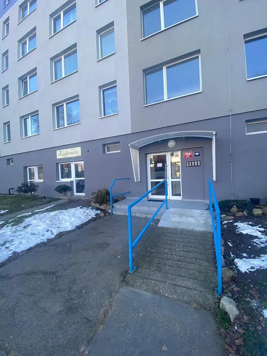 Bytový dům prošel kompletní rekonstrukcí (zateplená fasáda, nový výtah, stoupačky, elektroinstalace, střecha, plastová okna s žaluziemi, lodžie, vstupní vestibul s úpravou pro vozíčkáře a kočárky).