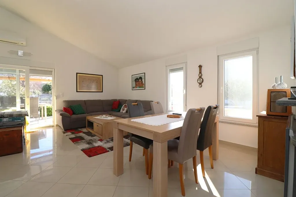 Dům o užitné ploše 97,52 m2 stojí na pozemku o rozloze 336 m2 a sestává ze vstupní haly, malé koupelny, úložného prostoru, tří ložnic, velké koupelny, prostorné kuchyně a obývacího pokoje s přístupem na krytou terasu o rozloze 12 m2, orientovanou na jih. Terasa je obklopena dlážděním dvorem a velmi pěkně upravenou zahradou. Dům byl postaven v r. 2010, je oplocený a je vybaven klimatizací. Na dvoře je gril, dále malý montovaný domek sloužící především jako sklad a parkovací místo pro tři auta. Dům je kompletně zařízený a veškerý nábytek je zahrnut v ceně nemovitosti.