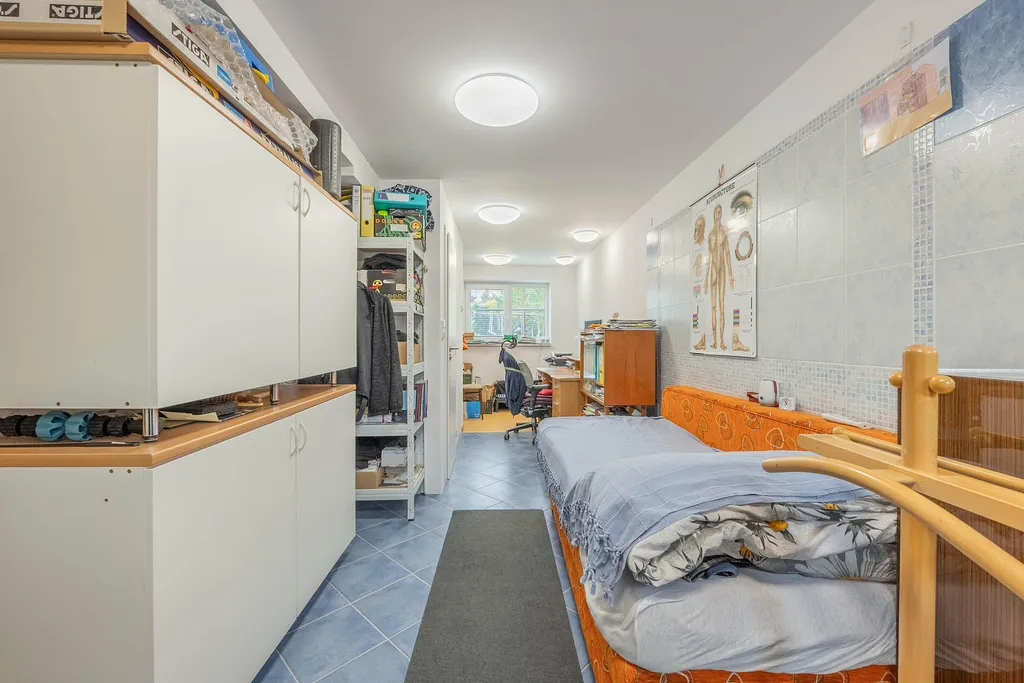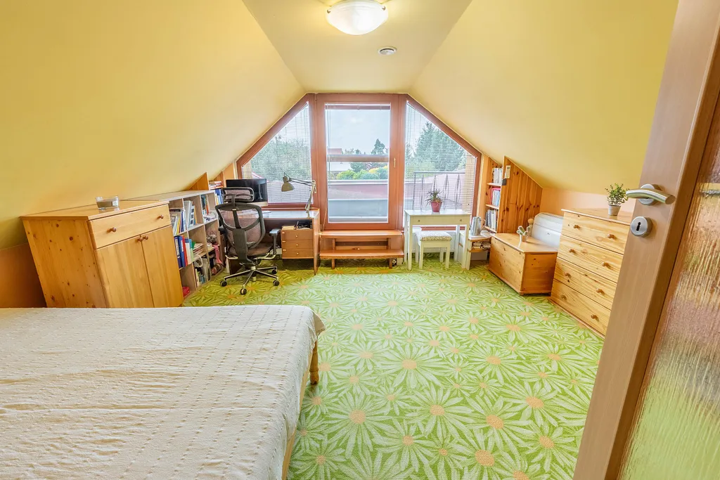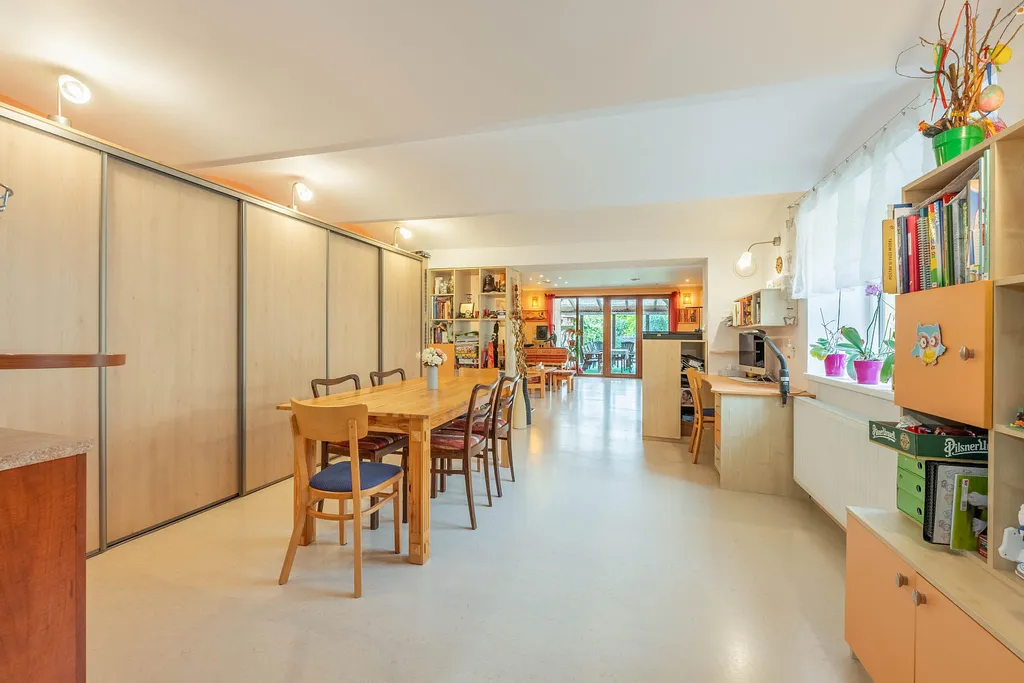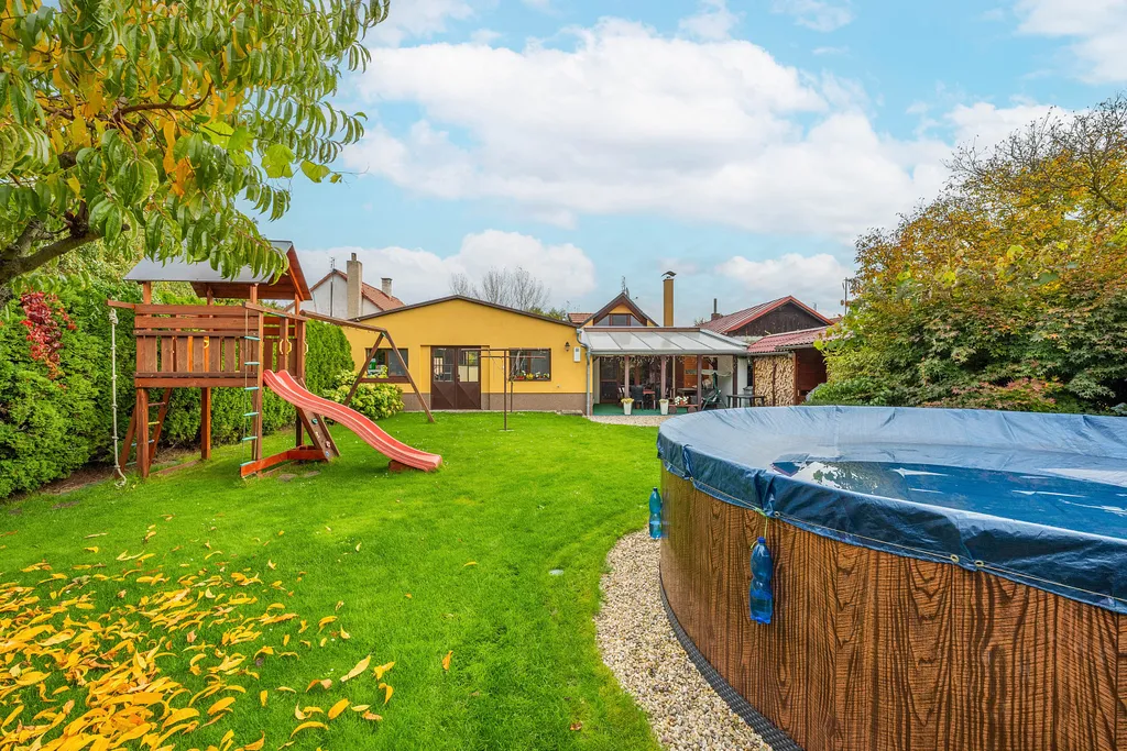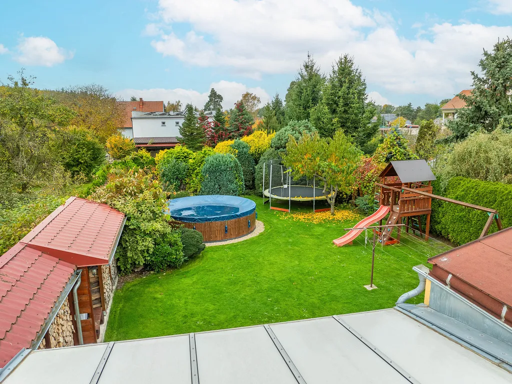 Ráda bych vyzdvihla prostornou zahradu za domem o výměře 655 m², která je ideální pro děti, relaxaci i společenské aktivity. Příjemným bonusem je automatická sekačka, která vám zjednoduší její údržbu.