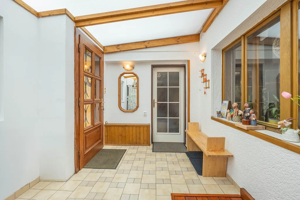 V přízemí domu najdete kromě chodby a předsíně ložnici, obývací pokoj s krbovými kamny, kuchyň, jídelnu, prostornou pergolu, koupelnu, WC a také samostatnou bytovou jednotku (se sprchovým koutem a WC) se samostatným vchodem. Tato jednotka je v současnosti využívána jako pracovna, ale může sloužit jako samostatná garsonka.