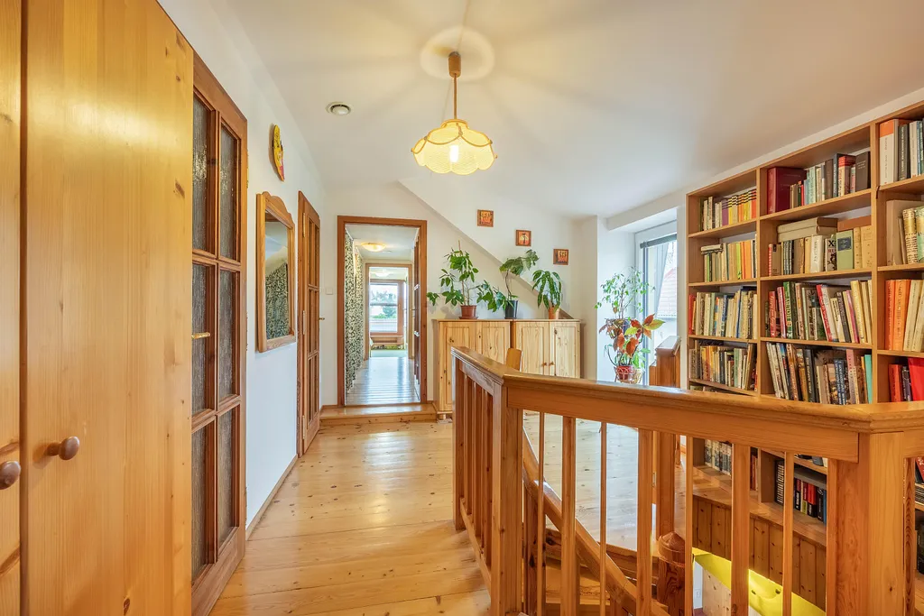Nabízíme zprostředkování prodeje patrového rodinného domu v klidné části obce Hradištko, s dispozicí 7+1 + garáž, stojícího na pozemku o rozloze 1140 m². Tento cihlový dům byl zkolaudován v roce 2006 a je ve velmi dobrém stavu. Užitná plocha domu činí 241 m² + garáž pro 2 auta 36m² + pergola. Dále je zde praktický zahradní domek a nadzemní bazén vyhřívaný tepelným čerpadlem. Součástí domu je též malý sklípek o ploše 6 m² přístupný z předsíně.