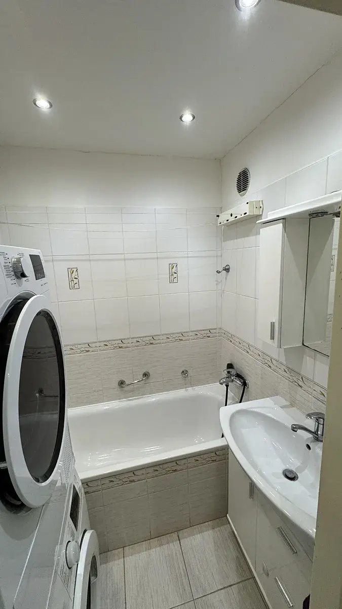 Dispozice nabízí obývací pokoj (plovoucí podlaha), prostornou ložnici, kuchyň, koupelnu (zděné jádro, vana, dlažba, obklad), chodbu a komoru v bytě, což je velmi dobrý úložný prostor či šatna. Dále k bytu náleží sklepní drátěná koje v suterénu domu. Přístup do bytu vede přes uzamykatelnou chodbu oddělenou od výtahů a schodiště, v domě jsou dva prostorné nové výtahy.