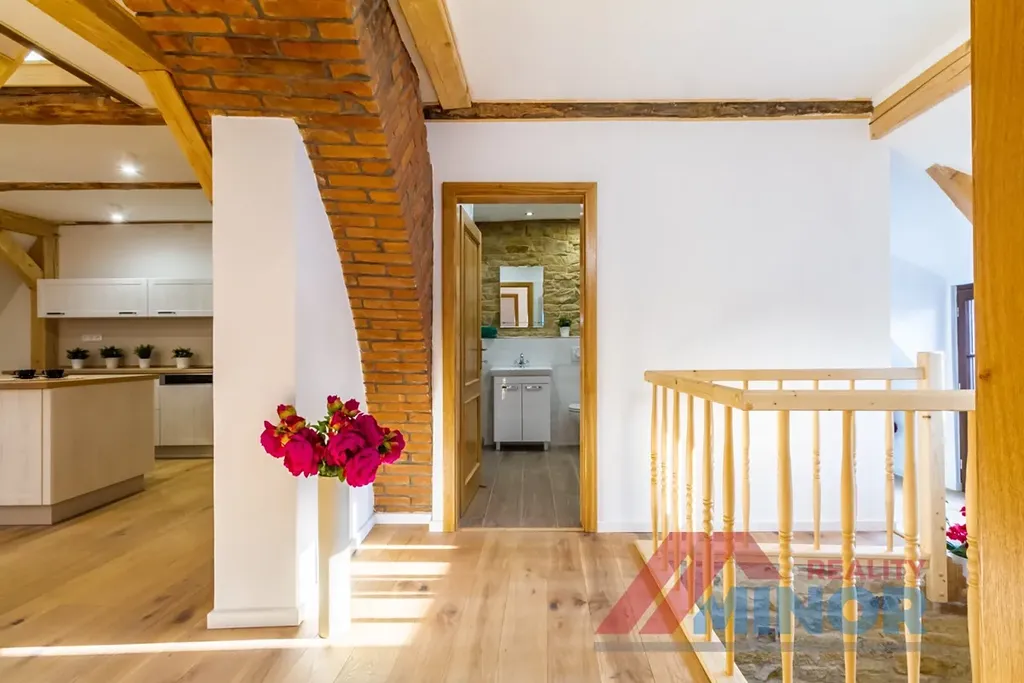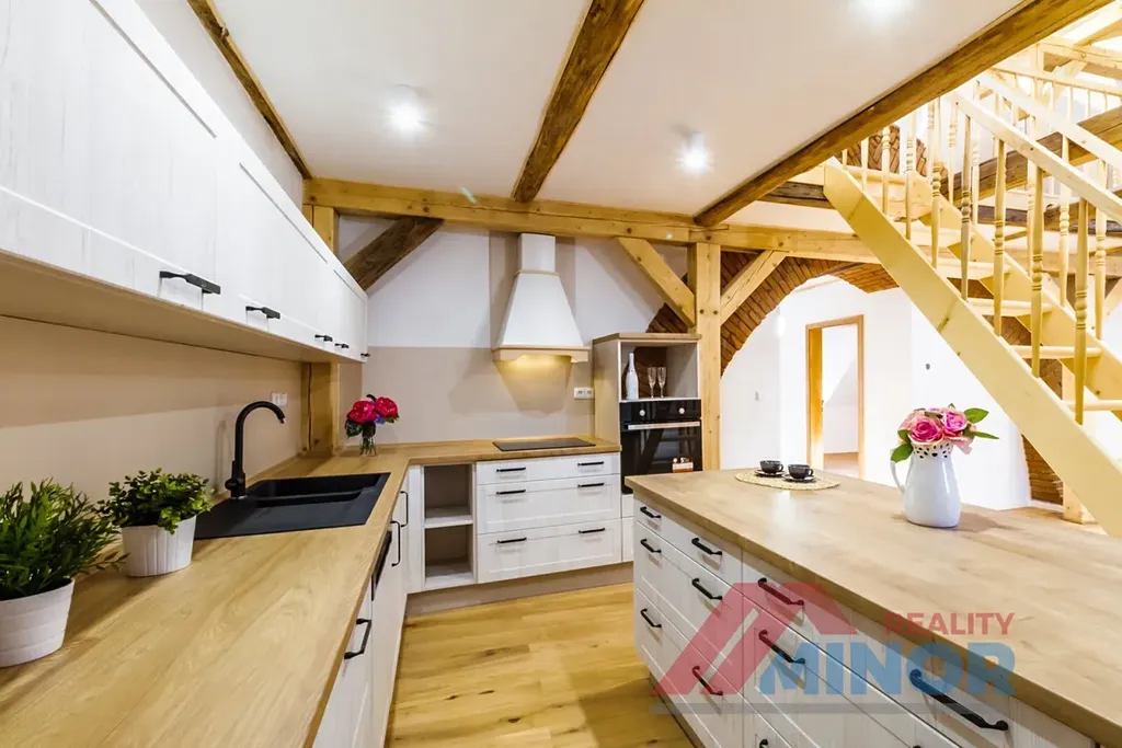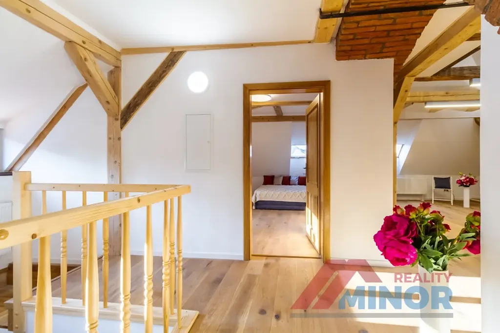 Dovolujeme si Vám nabídnout k pronájmu byt po celkové rekonstrukci v bytovém domě v centru města. Byt o velikosti 118 m2 a dispozičním uspořádání 3 + kk se nachází v 1. a 2. patře domu, který díky zdařilému a důkladnému provedení, nabízí krásné a kvalitní bydlení. Tento byt s úžasnou atmosférou sestává z vstupní předsíně, kuchyně s obytným prostorem, pokoje, mezonetového pokoje, koupelny s WC a terasy o velikosti 24 m2. Kvalitní a prostorná kuchyňská linka, která odpovídá současným moderním trendům, byla vyrobena "na míru" a je vybavena varnou deskou, el. troubou, myčkou nádobí a digestoří. Byt má vlastní elektrický bojler pro ohřev vody. Vytápění bytu je zajišťováno plynovým kotlem, který je umístěn ve společném prostoru a vytápí všechny bytové jednotky v domě, avšak každý byt má vlastní měřiče odebraného tepla. Nájemné činní 24.700,- Kč měsíčně. Zálohy na služby spojené s užíváním bytu činí pro dvě osoby 4.200,- Kč včetně úklidu společných prostor a internetového připojení. Elektrická energie bude převedena na nájemce.