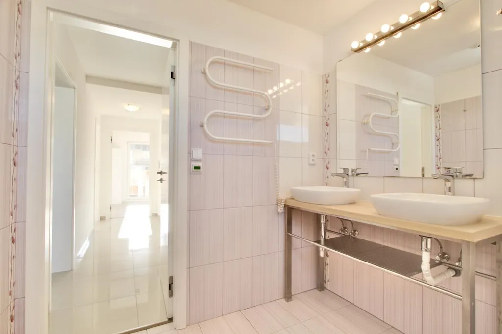 Byt je nabízen částečně zařízený (viz aktuální fotografie): kuchyňská linka se sklokeramickou varnou deskou, horkovzdušnou troubou, myčkou a lednicí. K dispozici je také pračka a sušička v komoře, vestavěné skříně v ložnicích a v předsíni.