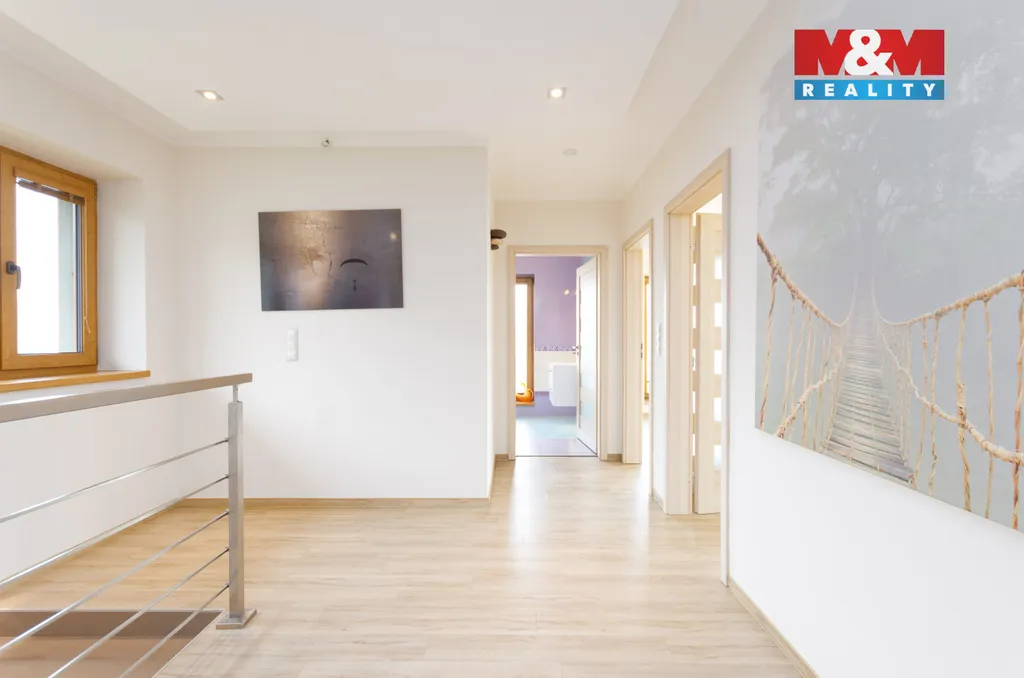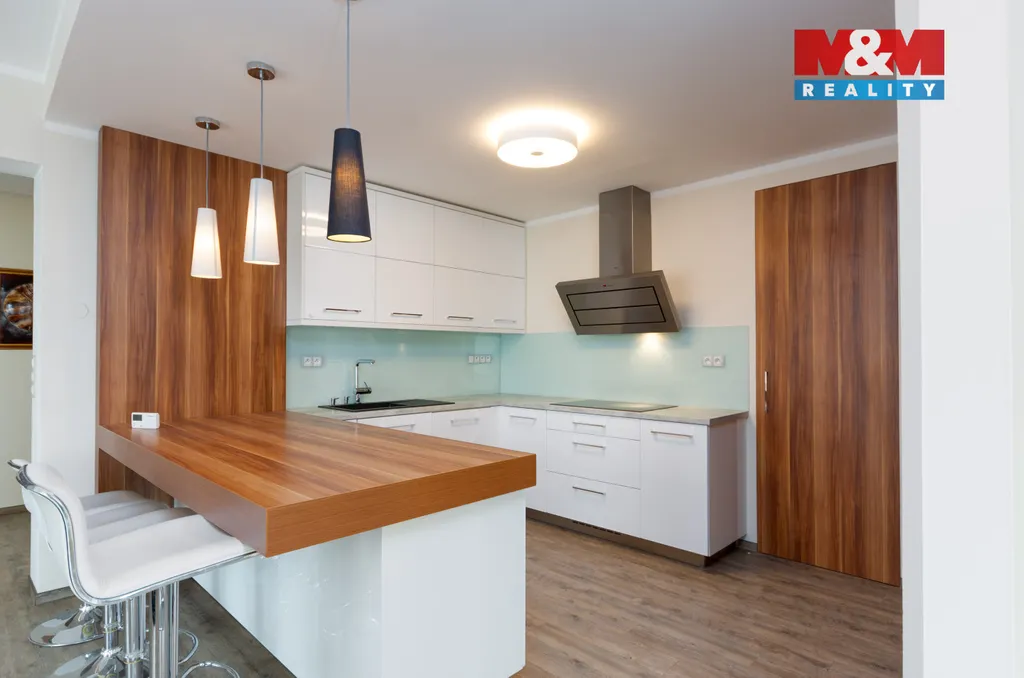 Nabízíme pronájem poloviny vily , která svým umístěním nabízí vyjímečné výhledy do okolí a disponuje třemi bytovými jednotkami. Jedná se o luxusní atypický mezonetový byt 5+kk s terasou. Byt je kompletně vybaven, proto je vhodný i jako manažerské bydlení. V přízemí je kuchyň propojena s obývacím pokojem, se vstupem na velkou terasu s krásnými výhledy, wc, technická místnost, pokoj, ve 2.NP jsou 3 ložnice, 2 koupelny s wc. Byt je vybaven velmi nadstandartně včetně kuchyňské linky, s veškerými vestavěnými spotřebiči, u kuchyňské linky navíc komora, Vila má vlastní pozemek o velikosti 1 624 m2, který lze využívat i dostatek parkovacích míst. Byt má vlastní vstup do domu. Lze využít i sklepních prostor. Dům je vytápěn tepelným čerpadlem, v bytě je podlahové topení. Dům má úžasné umístění bez sousedů, přesto 4 min.pěšky hotel Zámeček pod Hradem, ZŠ, MŠ , sportoviště 7 min. pěšky, centrum obce 10 min.pěšky, autobusová doprava do všech okolních měst - Nový Jičín, Kopřivnice, Hranice.