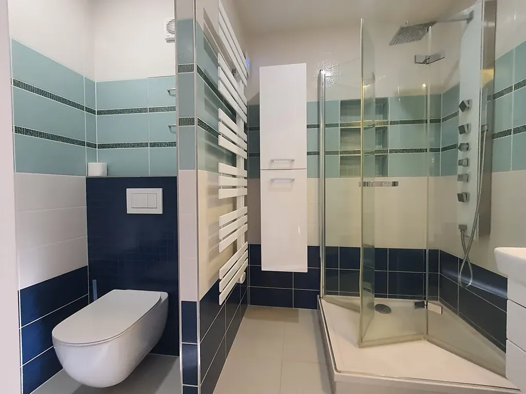 K dalším přednostem tohoto bytu patří 2 samostatné pokoje, velkorysá koupelna se sprchovým koutem a samostatná komora s pračkou a regály.