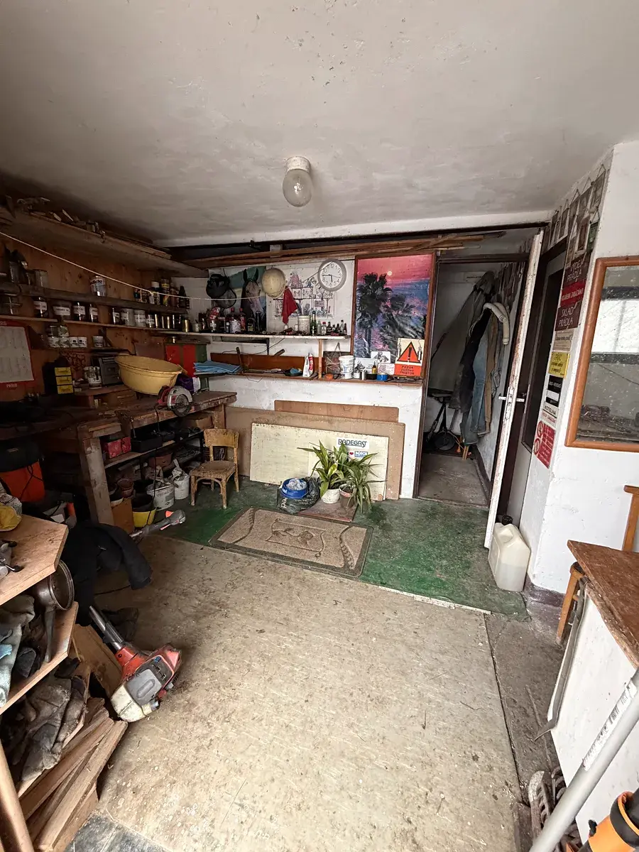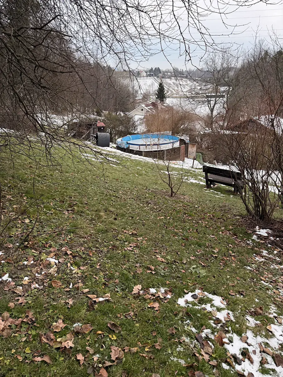 Na pozemku stojí stavba, která je využívaná jako chatička se společenskou místností, zavedené WC, možností přespání v podkroví a s úložnými prostory v přízemí.