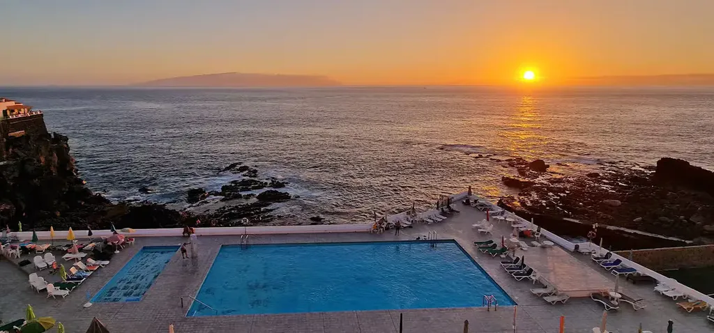Stylové a kompletně zrekonstruované studio se nachází přímo u oceánu v oblíbeném letovisku Puerto de Santiago, v rezidenčním komplexu Europa Apartments s přímým přístupem na pláž a pečlivě udržovanými zahradami. Apartmán je situován v přízemí a nabízí pohodlný bezbariérový přístup po širokém schodišti nebo rampě. Interiér působí svěže, moderně a velmi útulně. Z malé přední terasy se otevírá nádherný výhled na bazény, Atlantický oceán a ostrov La Gomera, přičemž západní orientace zajišťuje slunce po celý den a nezapomenutelné západy slunce po celý rok. Komplex nabízí bazén, tenisový kurt a příjemné venkovní prostory ideální k relaxaci. Studio o obytné ploše 30 m² disponuje jedním obytným prostorem, koupelnou a terasou s výhledem na oceán. Díky své poloze, stavu a atmosféře je ideální jak pro vlastní rekreaci, tak jako atraktivní investice k pronájmu.