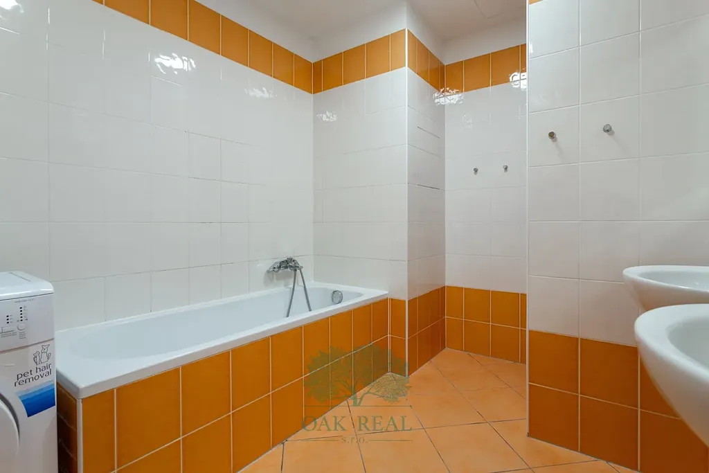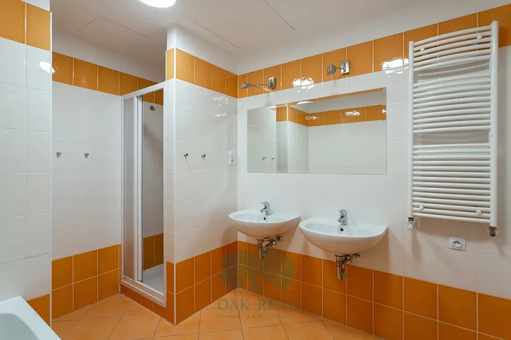 K bytu dále náleží dva samostatné pokoje se vstupem na balkon. Z obou pokojů je výhled do vnitrobloku Rezidence Korunní. Koupelna je vybavena vanou, sprchovým koutem, dvěma umyvadly a prostorem pro pračku. Naproti koupelně se nachází prostorná komora, která může sloužit jako šatna nebo úložný prostor. Samostatná toaleta s umyvadlem je umístěna u vstupu do bytu, kde se rovněž nachází velká šatní skříň.