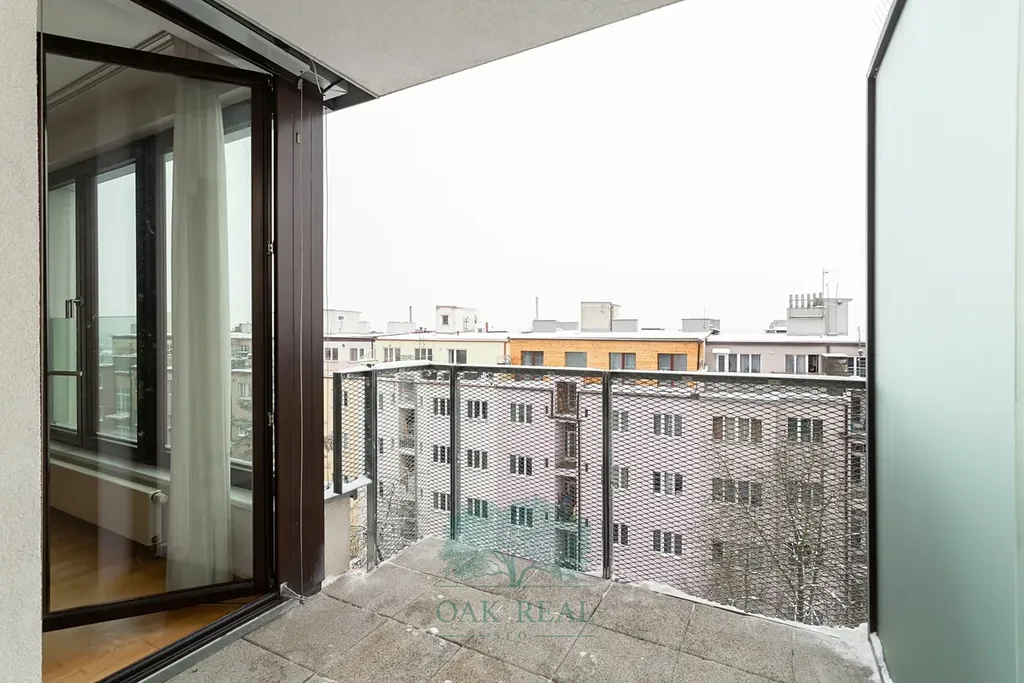 Dominantou bytu je prostorný obývací pokoj propojený s jídelní částí a kuchyní s vestavěnými spotřebiči, která je oddělena volně stojícím ostrůvkem. Obývací pokoj disponuje velkým prosklením a vstupem na lodžii. Výhled směřuje do původní zástavby Vinohrad a na jih, směrem do vršovického údolí.