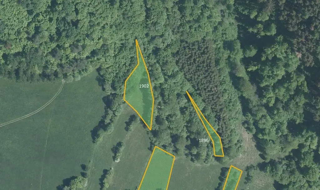 Pozemky mají celkovou výměru 6 432 m², přičemž k prodeji je 3 216 m². U parcely č. 1896 se jedná o lesní pozemek s výměrou 140 m², zbývající plocha tvoří trvalý travní porost o výměře 3 076 m². Díky kombinaci louky a lesního pozemku se jedná o zajímavou investici vhodnou jak pro dlouhodobé držení, tak pro hospodářské využití.
