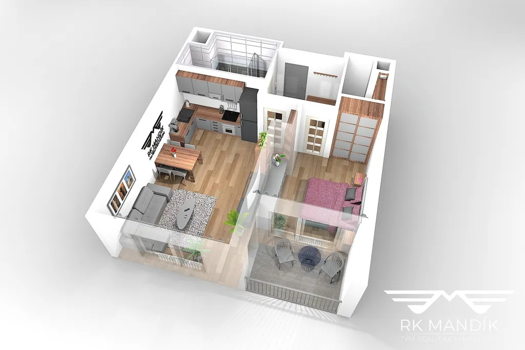 Z obývacího pokoje je vstup na praktickou lodžii, která tvoří příjemné místo na posezení.