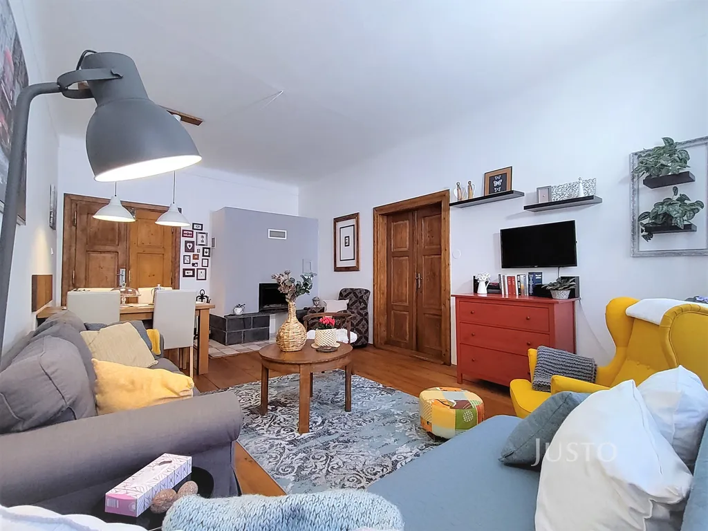 Byt je umístěn v 1. patře historického domu a prošel částečnou rekonstrukcí. Velkou výhodou je možnost využití části nemovitosti k podnikání.