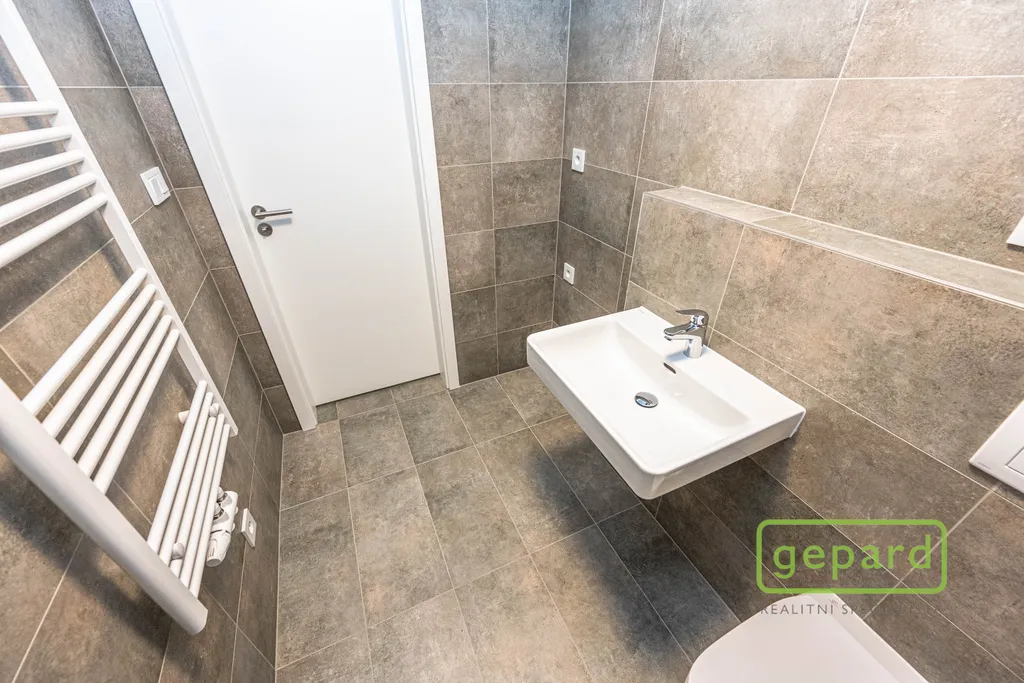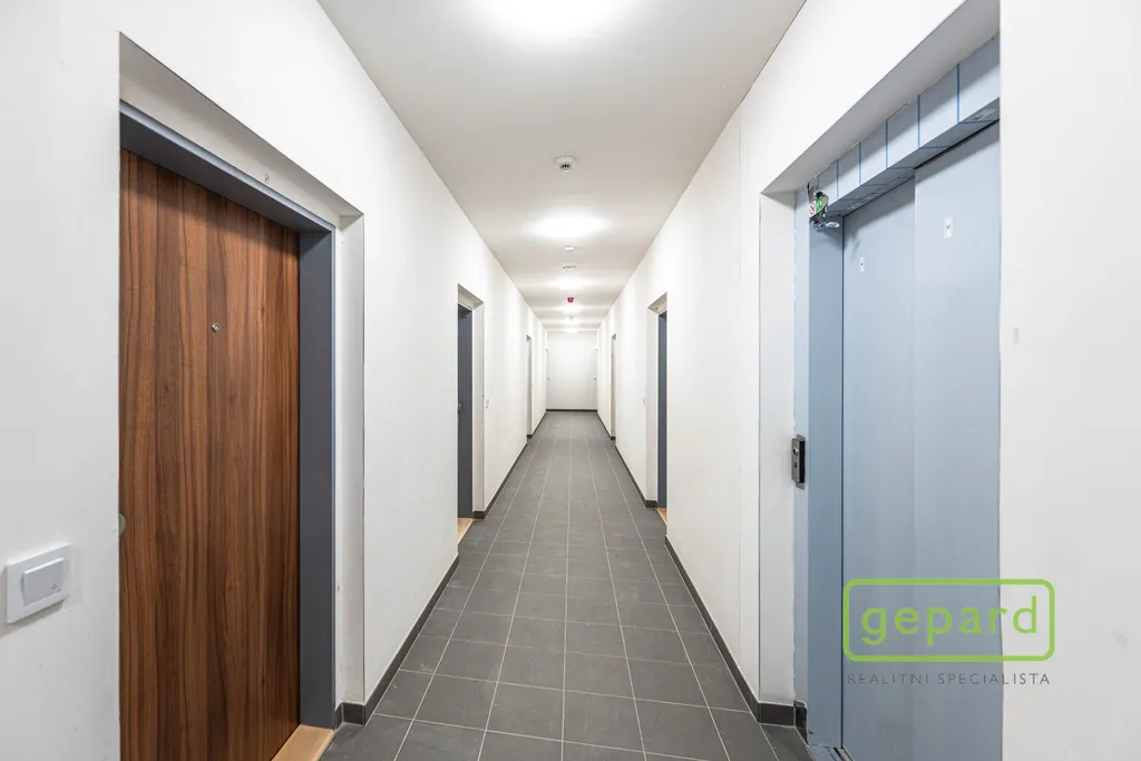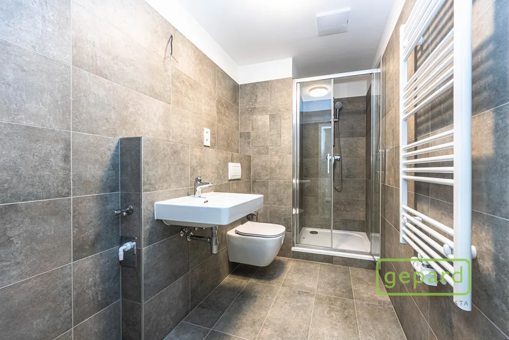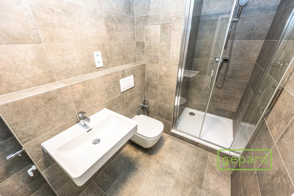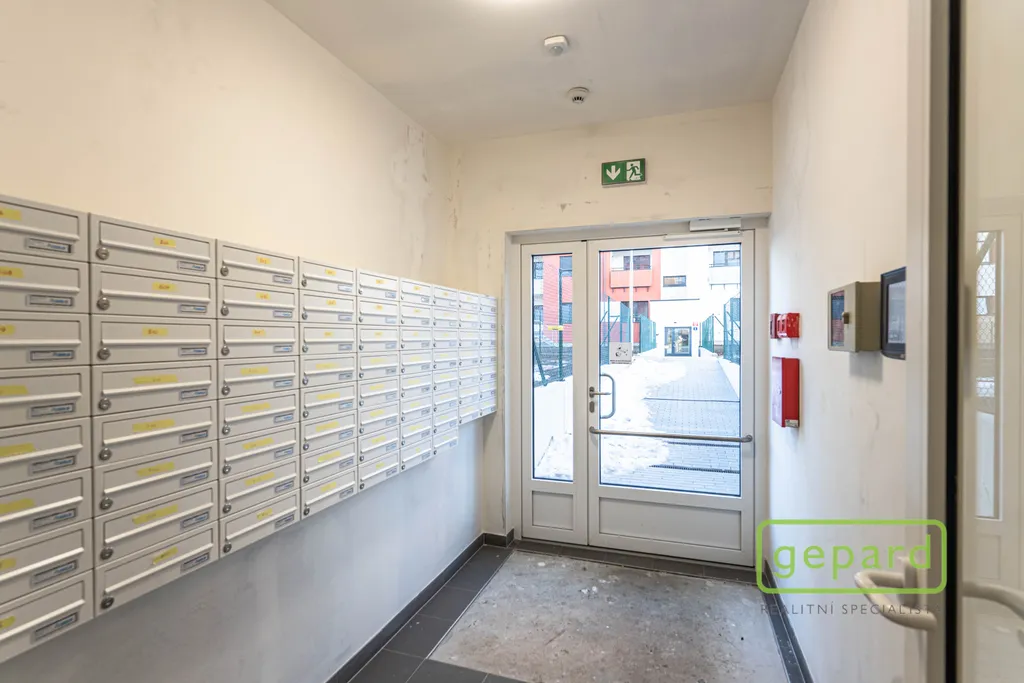 Bytová jednotka je vybavena laminátovou plovoucí podlahou v obytné části a keramickou dlažbou v předsíni a koupelně. V koupelně je sprchový kout, umyvadlo, WC s bidetovou sprchou a přípojka na pračku. Součástí bytu je příprava na kuchyňskou linku, rekuperace, exteriérové žaluzie, plastová okna s izolačním trojsklem a optický kabel pro TV a vysokorychlostní internet. Dům je nízkoenergetický, má dva výtahy a odpovídá vysokým standardům moderního bydlení. V domě je k dispozici společná kočárkárna/kolárna.