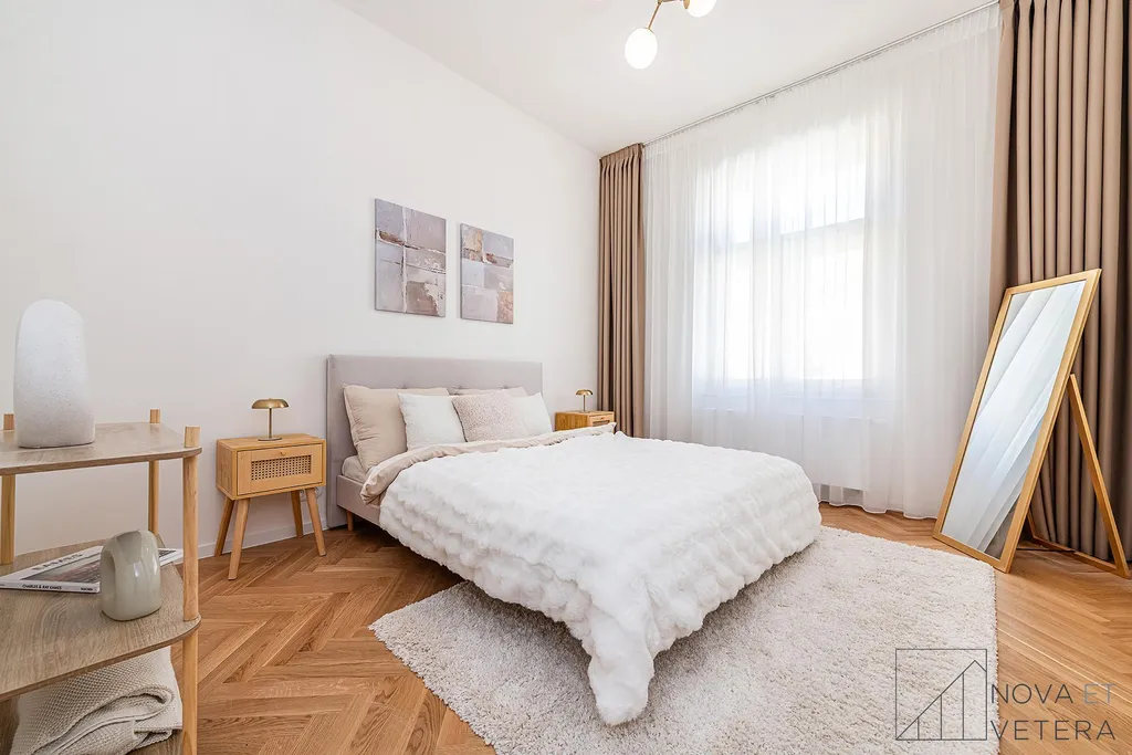 Vysoký standard kompletní rekonstrukce zahrnuje nové rozvody elektřiny, vody a odpadů. Dále rekonstrukce zahrnuje dřevěné parketové podlahy, kvalitní velkoformátové obklady a dlažbu od italského dodavatele MARAZZI. V koupelně a na toaletě naleznete sanitu značky GROHE. Moderní kuchyňská linka disponuje mimo jiné kvalitními spotřebiči značky BOSCH a zapuštěným granitovým dřezem.