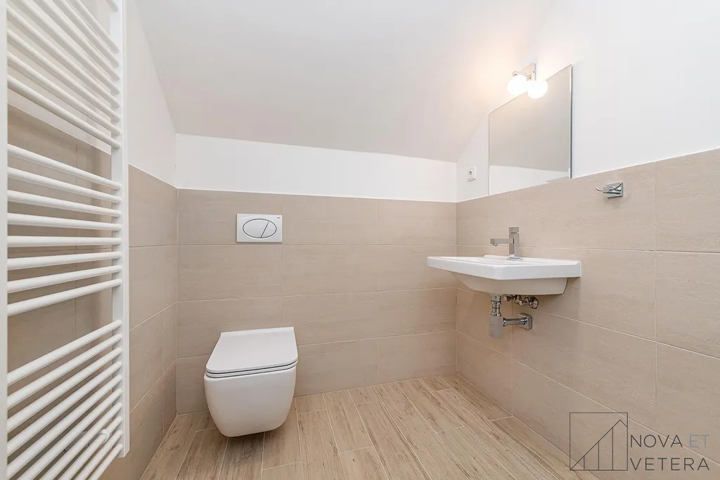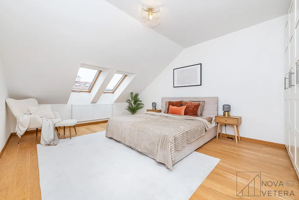 Na stejném podlaží se nachází ještě jeden podkrovní mezonet s dispozicí 5+kk ve stejném standardu.
