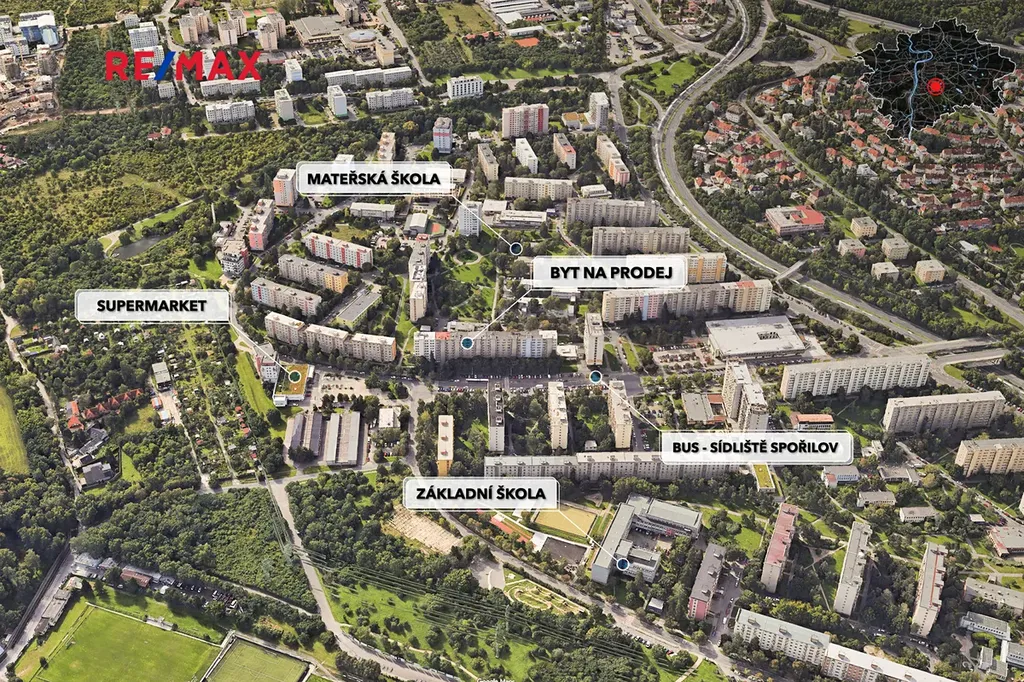 Spořilov, to je bydlení, kde máte vše na dosah. Je to starší pražské sídliště a proto je zde vše snadno dostupné - obchody, služby, školy -od mateřských až po gymnázium a ZUŠ, zdravotní středisko, veteriny a mnoho dalšího. V neposlední řadě jste v dosahu rozsáhlého pásu zeleně tzv. Trojmezí. Můžete se tedy procházet přírodou podél Botiče až do Hostivaře, nahoru na Chodov nebo dolů ke známému areálu Hamr a Hamerskému rybníku.