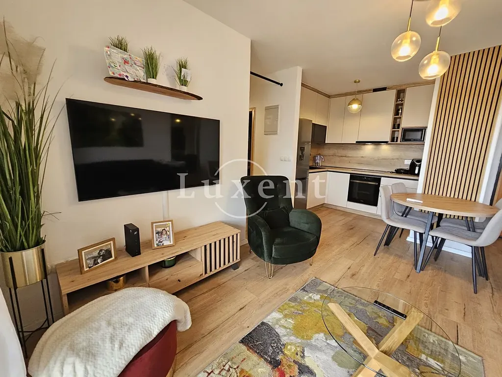 Byt je kompletně zařízený, vybavený klimatizací pro vytápění i chlazení, vestavěnými skříněmi a moderní koupelnou se sprchovým koutem. Součástí prodeje je také garážové parkovací stání o výměře 12 m².