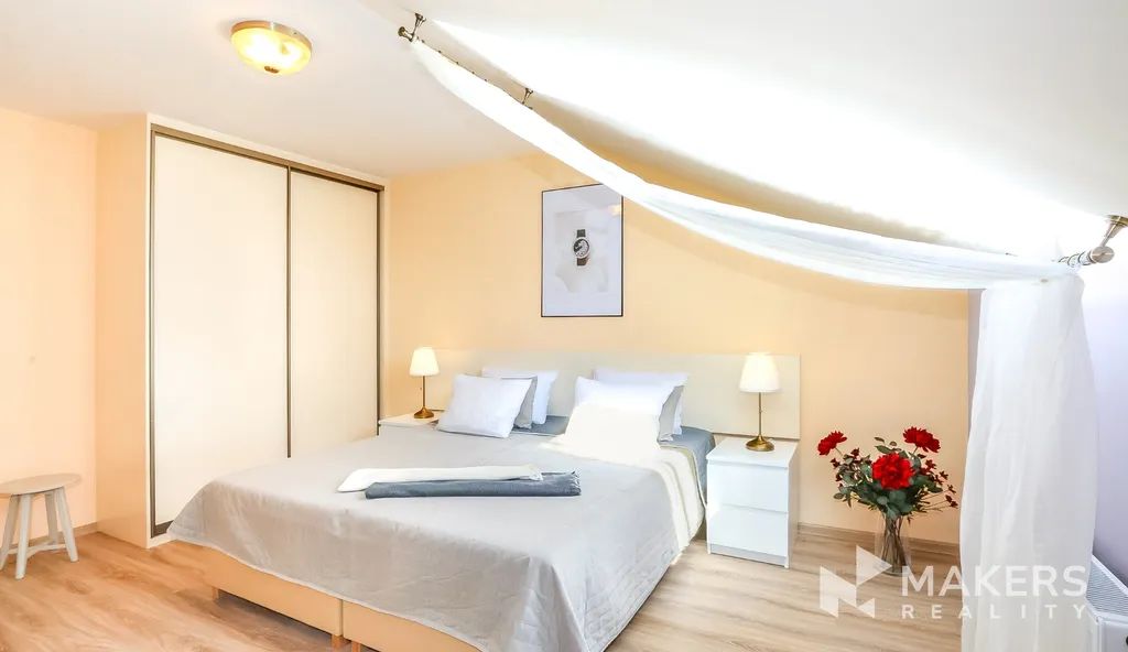 Nabízíme k dlouhodobému pronájmu (s možností krátkodobého pronájmu) krásný a velice útulný byt 3+kk o celkové ploše 100 m2, který se nachází v 5. nadzemním podlaží cihlové budovy s výtahem v Máchově ulici, Praha 2 - Vinohrady.