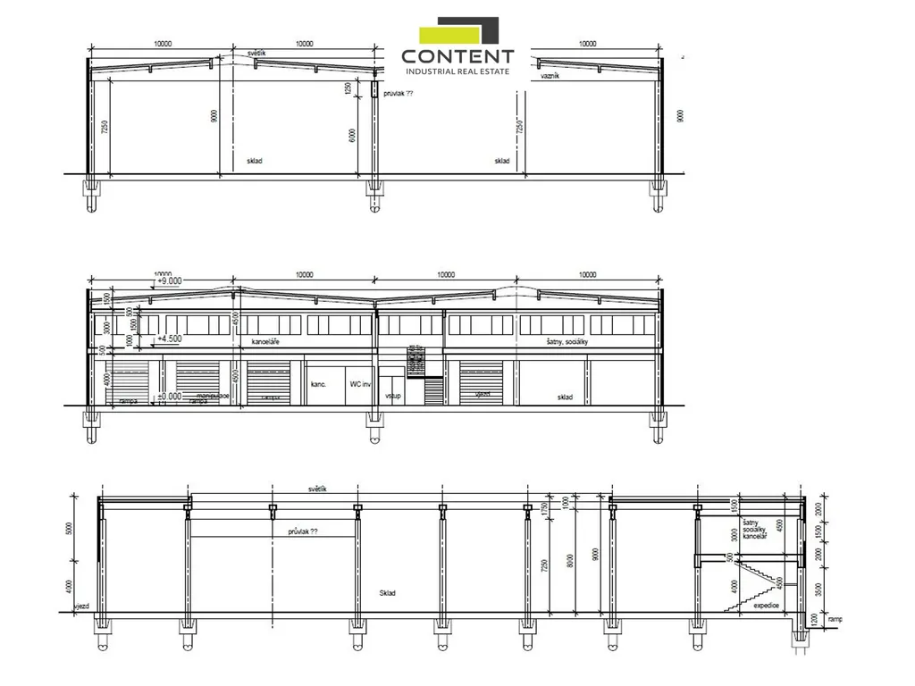 - hala 10000 m² k výstavbě, lze pronajmout od 5000 m²