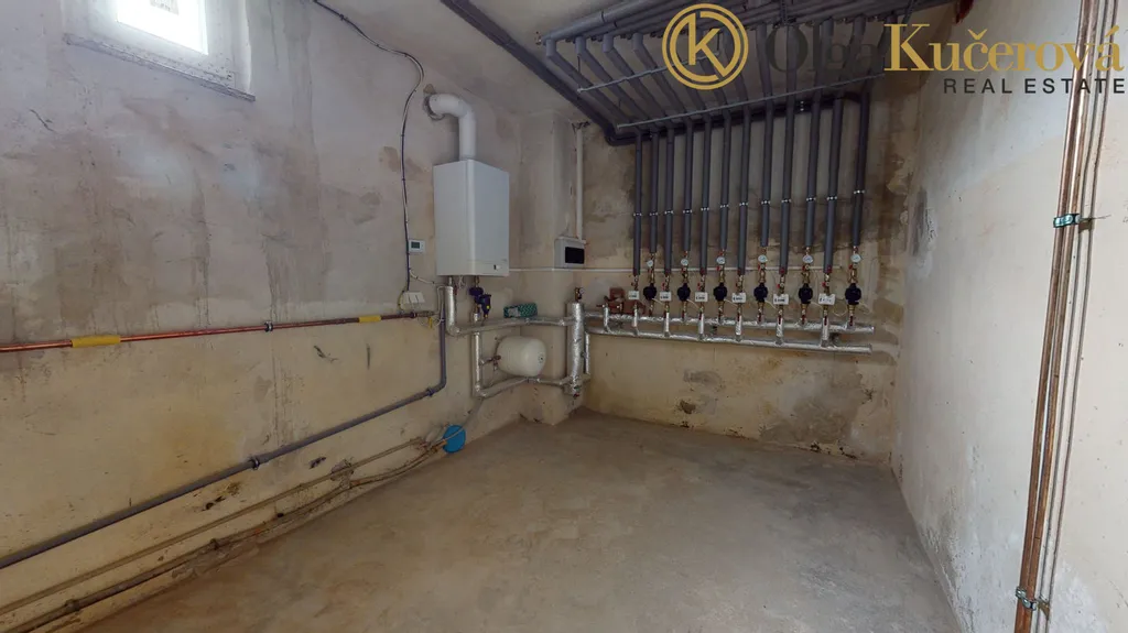 V suterénu nemovitosti jsou k dispozici toalety, šatny, skladovací prostory - celkem 7 místností, dále jsou v suterénu dvě chladící místnosti a technická místnost s úsporným kondenzačním kotlem s chytrým řízením provozu a bojler na ohřev TUV.