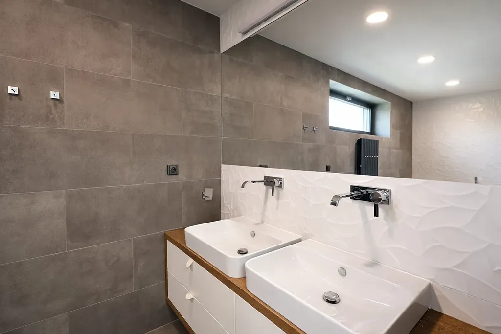 Do druhého patra vede elegantní schodiště a zde najdete soukromou část domu s ložnicemi a prostornou koupelnou. Suterén lze využít například jako domácí fitness, wellness prostor nebo dílnu. Celý dům je vybaven podlahovým topením, klimatizací a centrálním vysavačem, vytápění zajišťuje plynový kotel pro maximální komfort po celý rok.