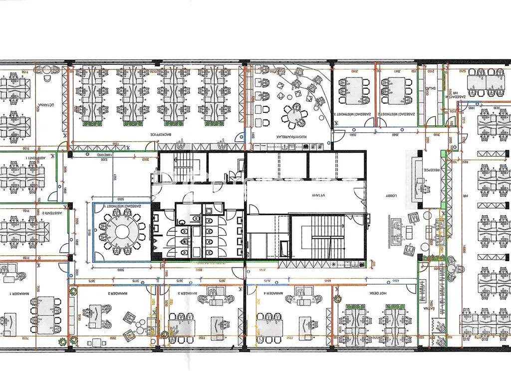 Celá jednotka byla ve spolupráci s renomovanou interiérovou firmou vytvořena pro potřeby nájemce dle aktuálních trendů a je možné ji pronajmout i s nábytkem v případě zájmu budoucího nájemce. Jednotka má vytvořenu reprezentativní recepci s přijímací zónou, 4 jednací místnosti (i neformální), větší open space kanceláře i menší kanceláře pro 4 nebo 6 osob případně pro vedení s jednací zónou.